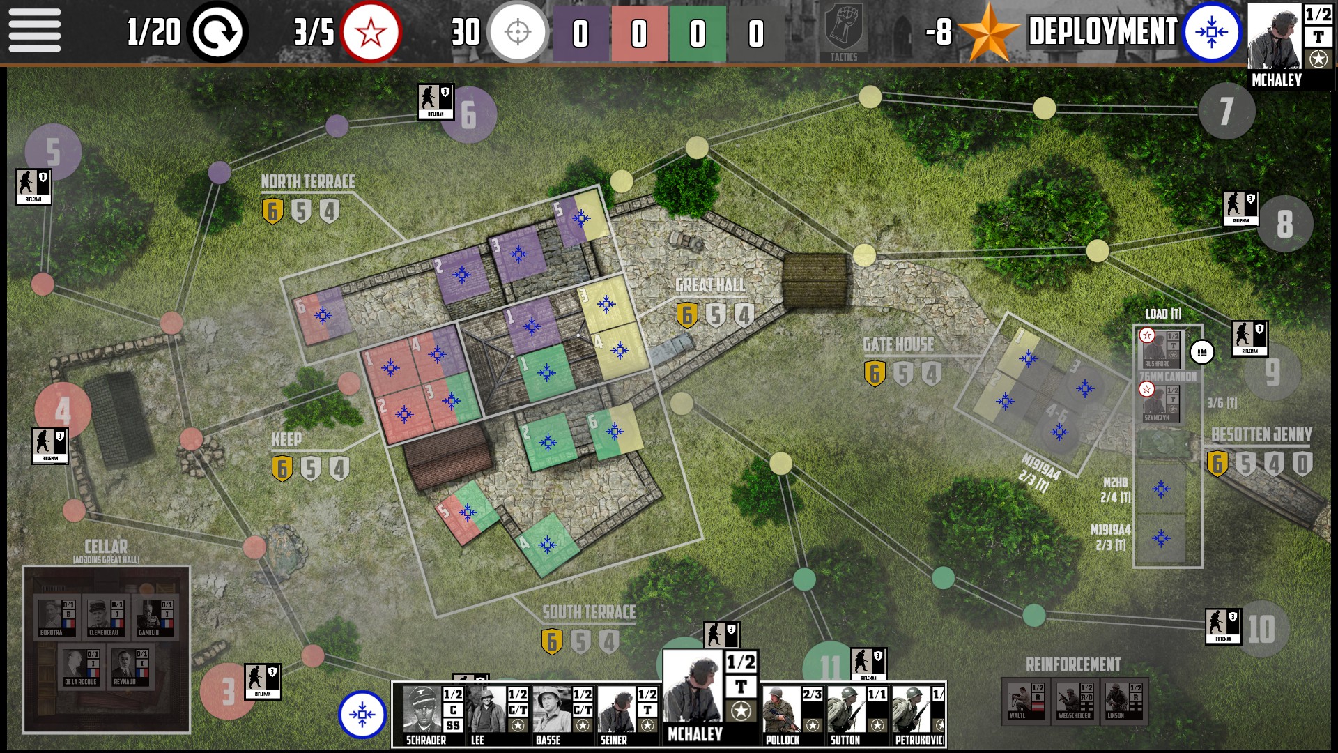 Цифровая реализация настолки про оборону замка Итнер, вторая игруха в серии (первая была про дом Павлова). Американские пехотинцы с французскими заключенными и солдатами вермахта отбиваются от СС в ожидании подмоги.