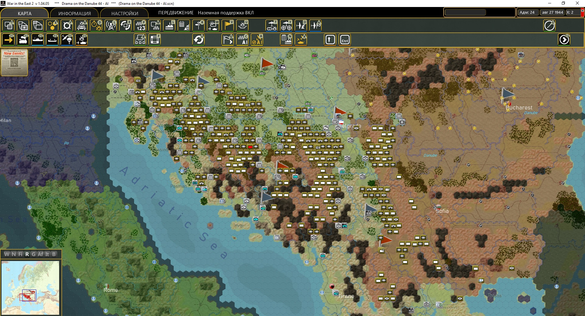 Первый ход. Все. Весь фронт в котле. Румыны сменили флажок. Югославию нельзя бросить и вилкой чистить это нечем.