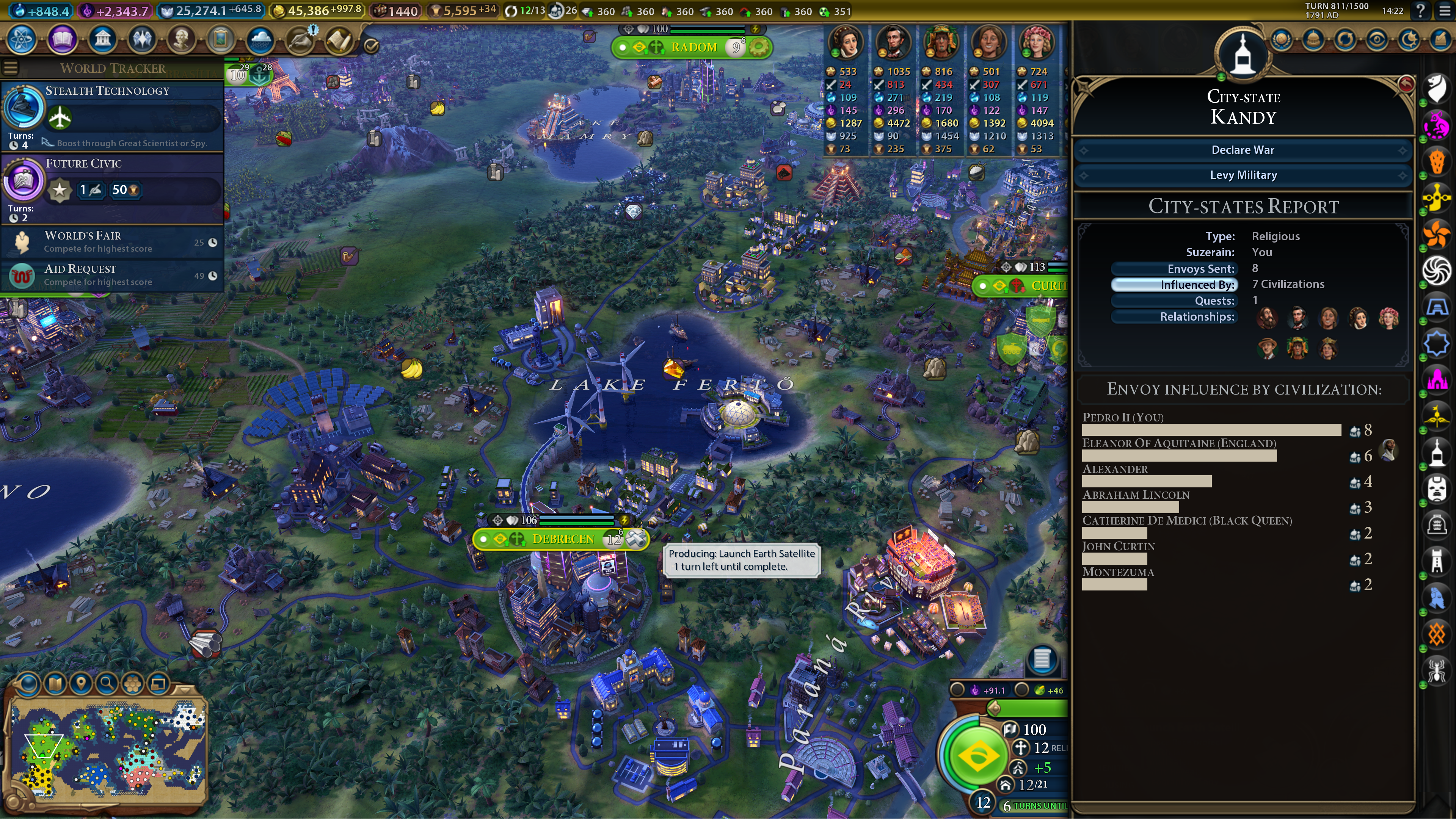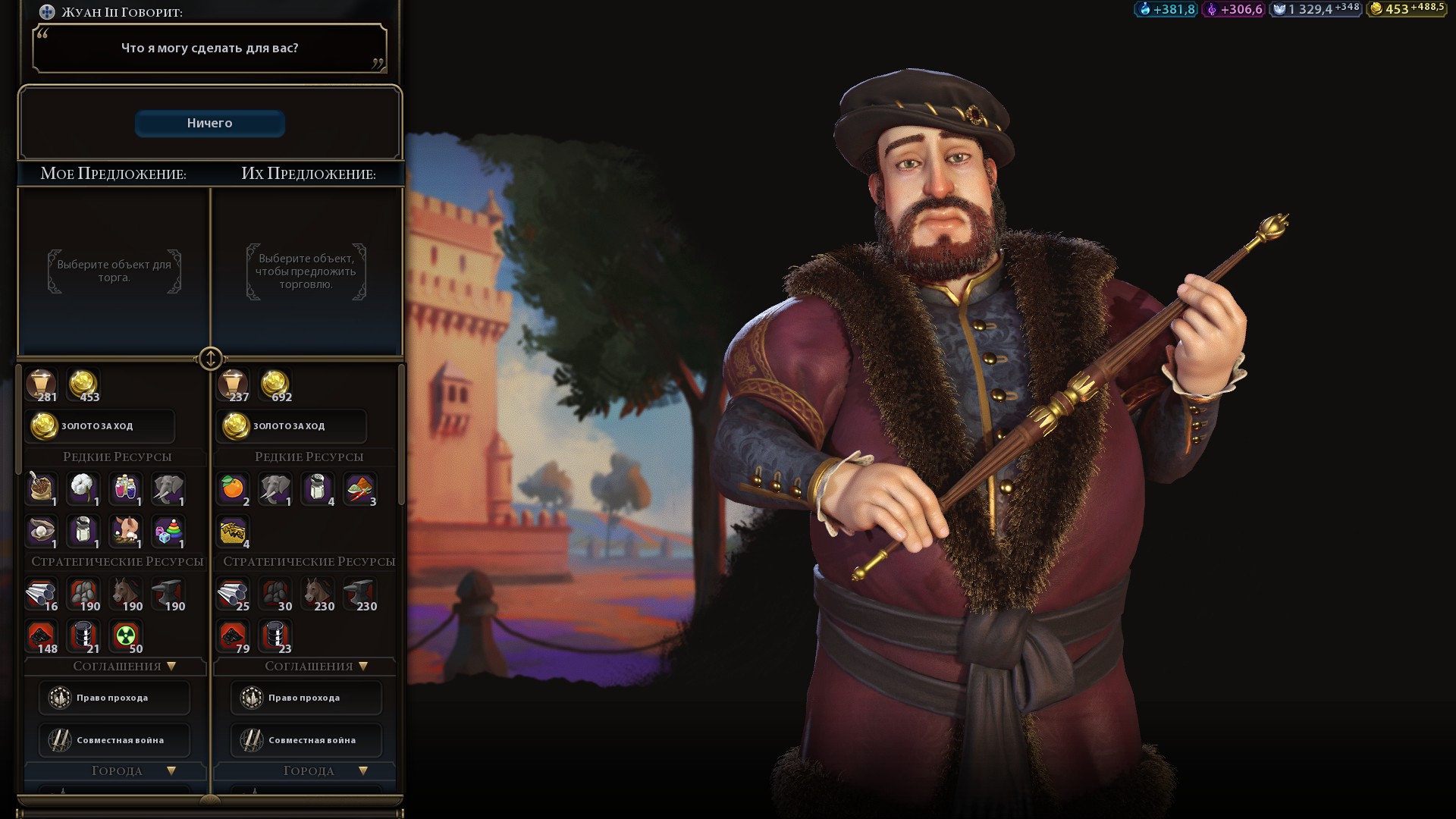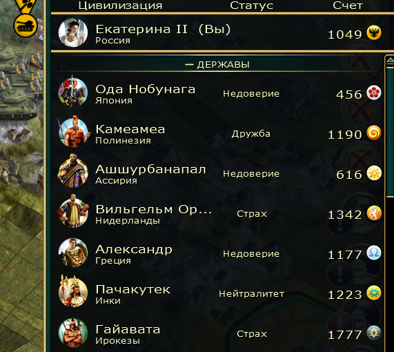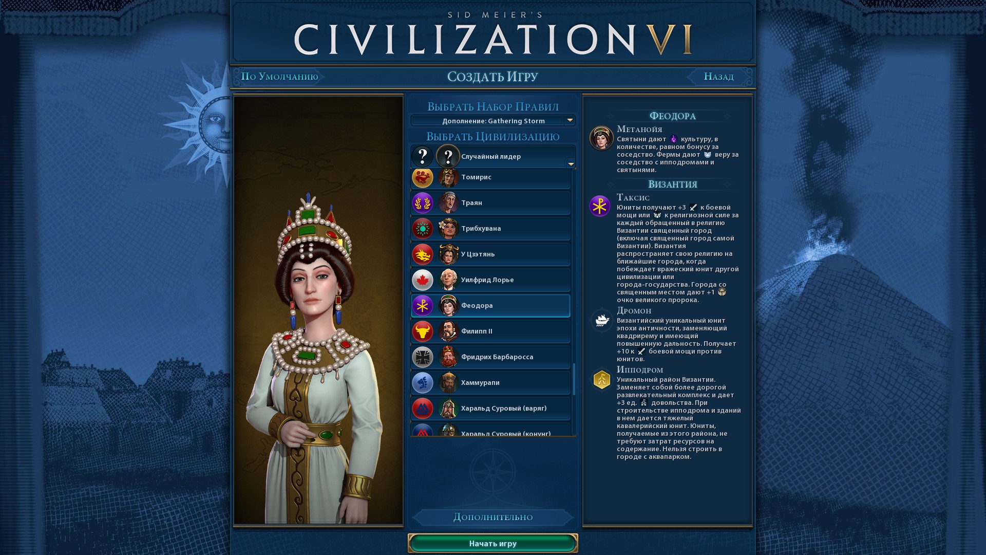Слабые цивилизации типа Франции за Медичи на очень потных картах могут быть вынуждены отслеживать каждое колебание настроений соседа, менять правительство под совпадающее с ним, направлять ему караваны и задабривать его подарочками, лишь бы он не размазал превосходящей армией, сорвав намечающуюся культурную победу. Но если тебе не нравится Томирис как сосед на континенте и старт в пустынной местности без ничего, то ты всегда можешь сделать реролл.