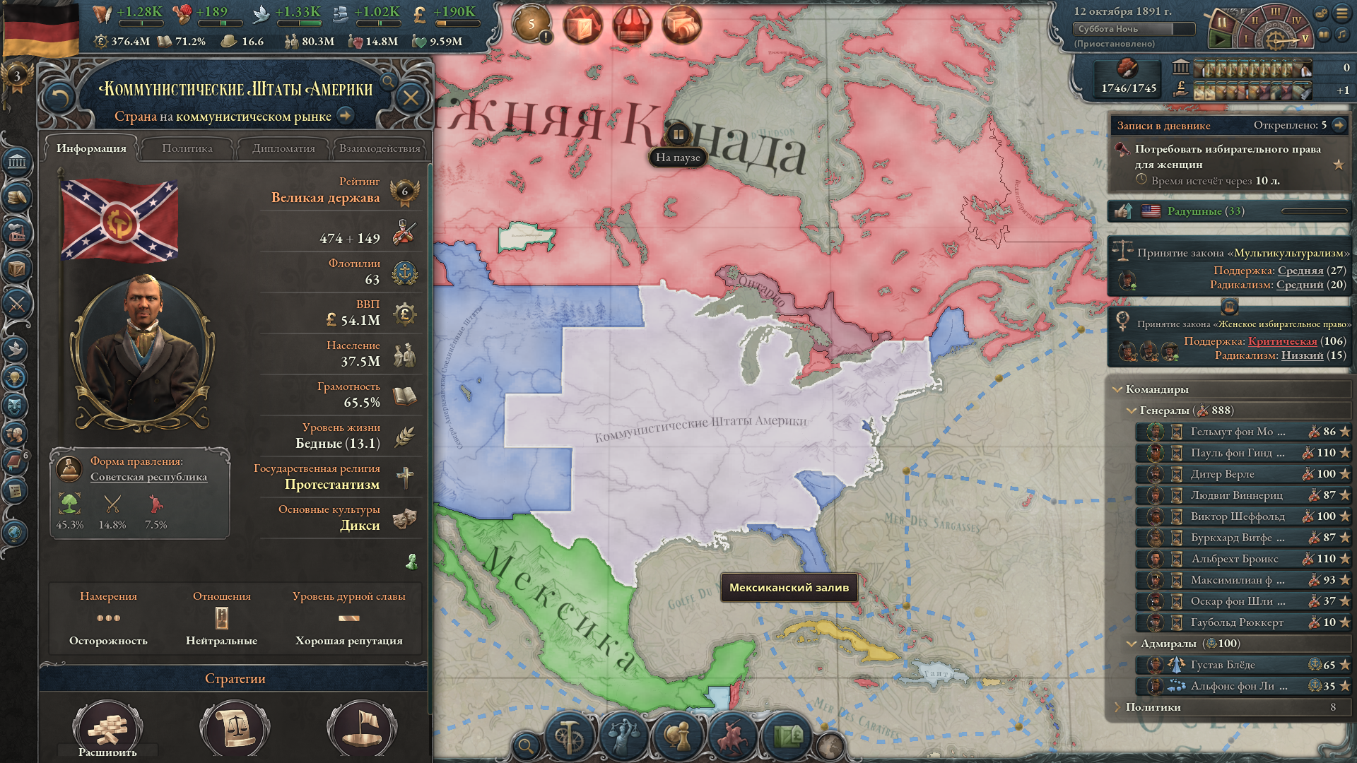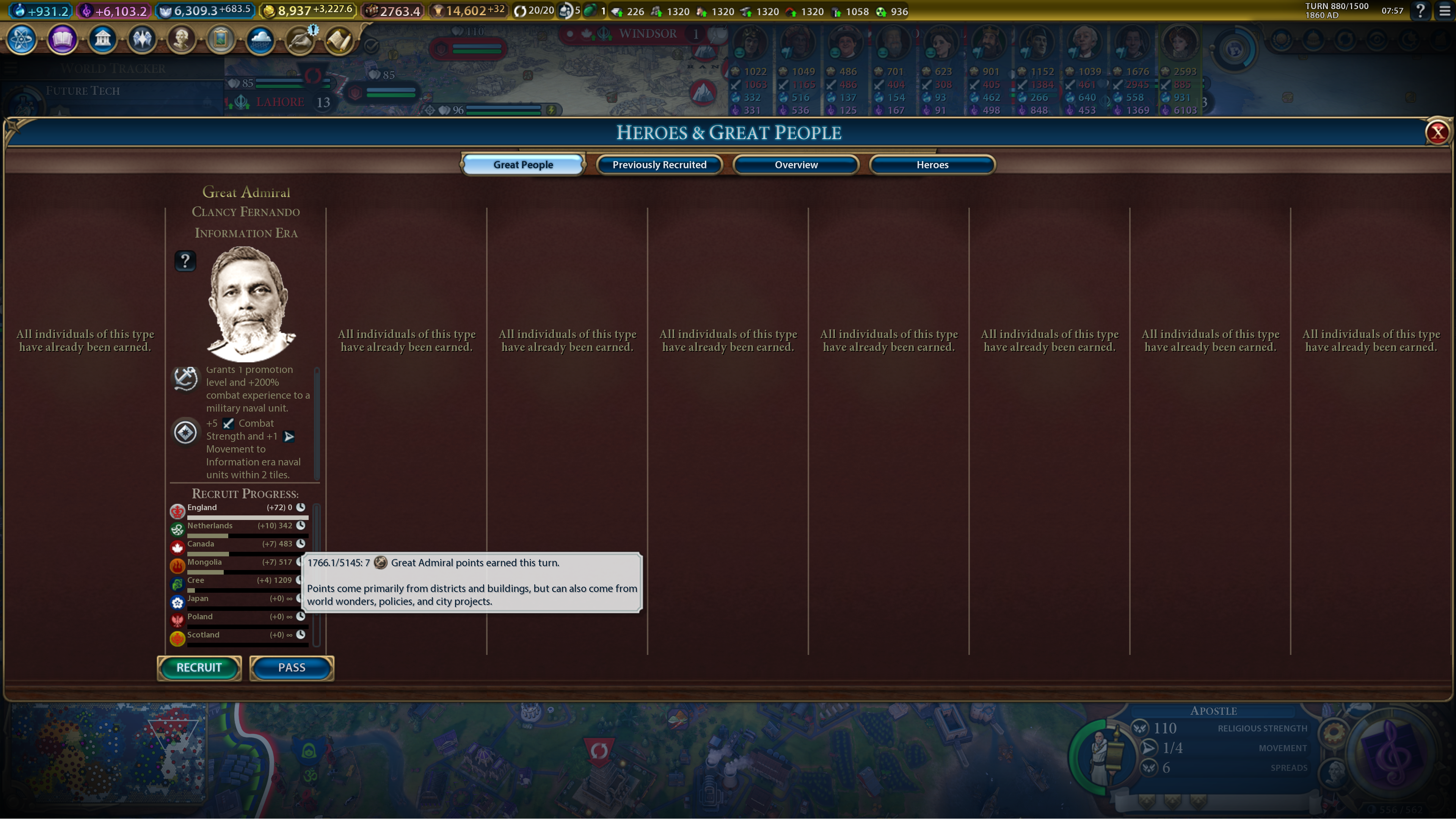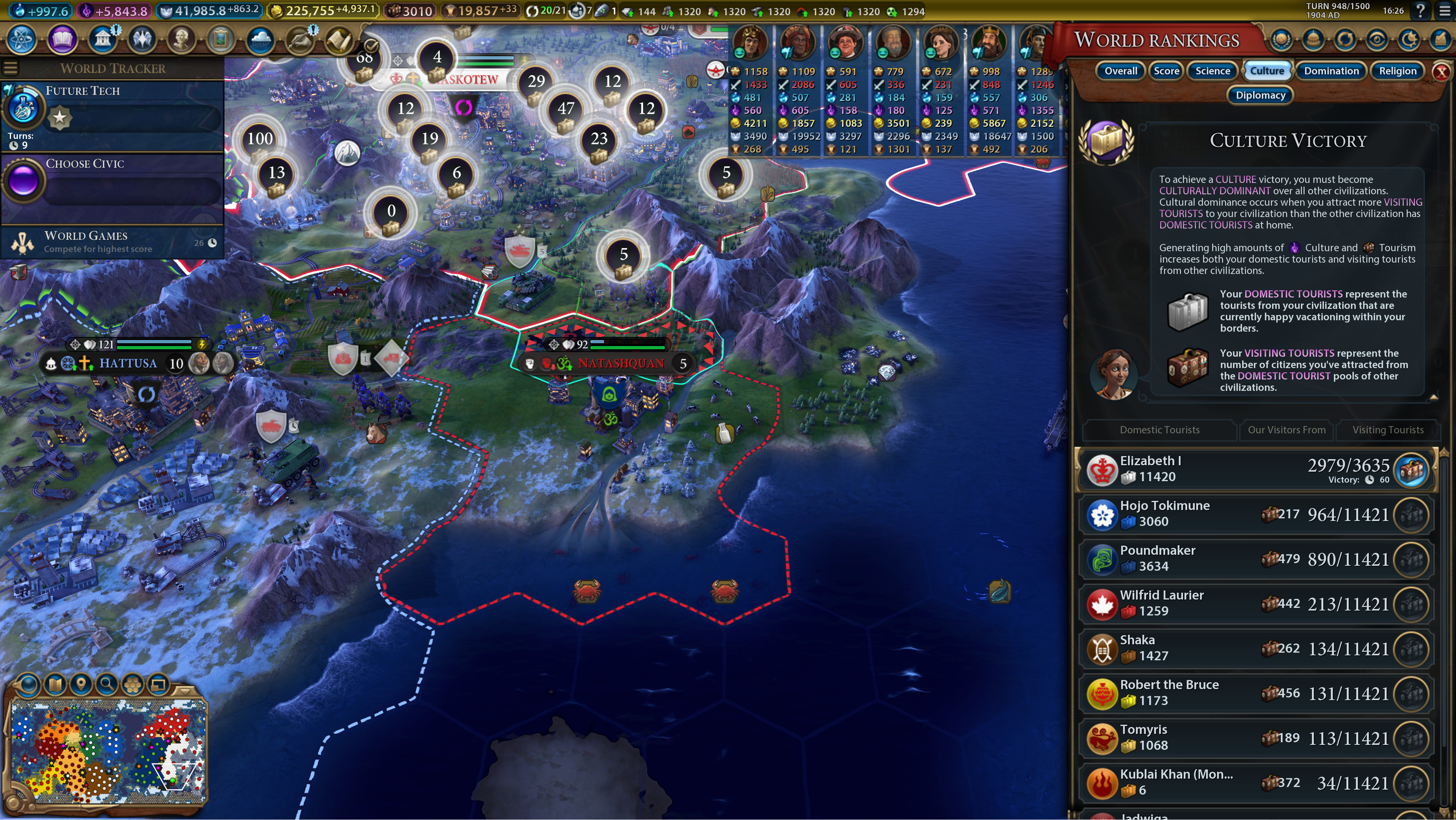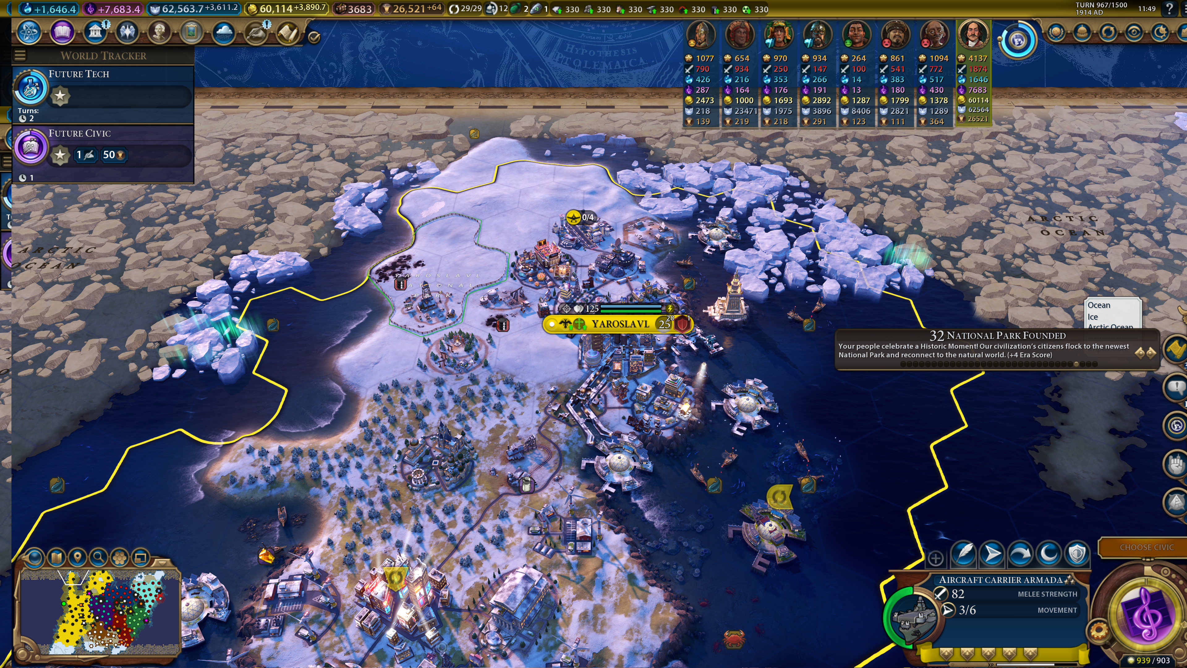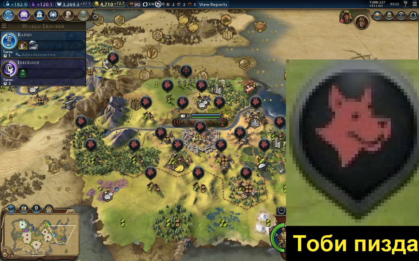 >>1279177 > Тут ещё нужно помнить что ты можешь давить культурой соседа настолько, что его города могут перейти к тебе через бунт. Не всегда это выгодно и приходится ограничивать культуру города, специально не строя культурные постройки. На пикриле лидер цивилизации в момент, когда к нему захотел примкнуть бесполезный город из-за преклонения перед его культурой.
