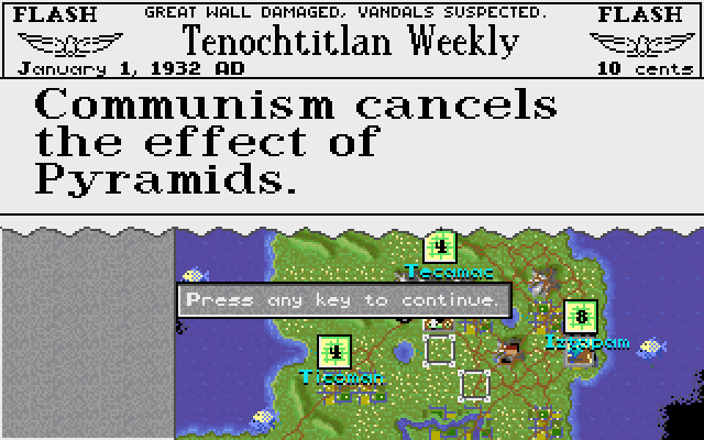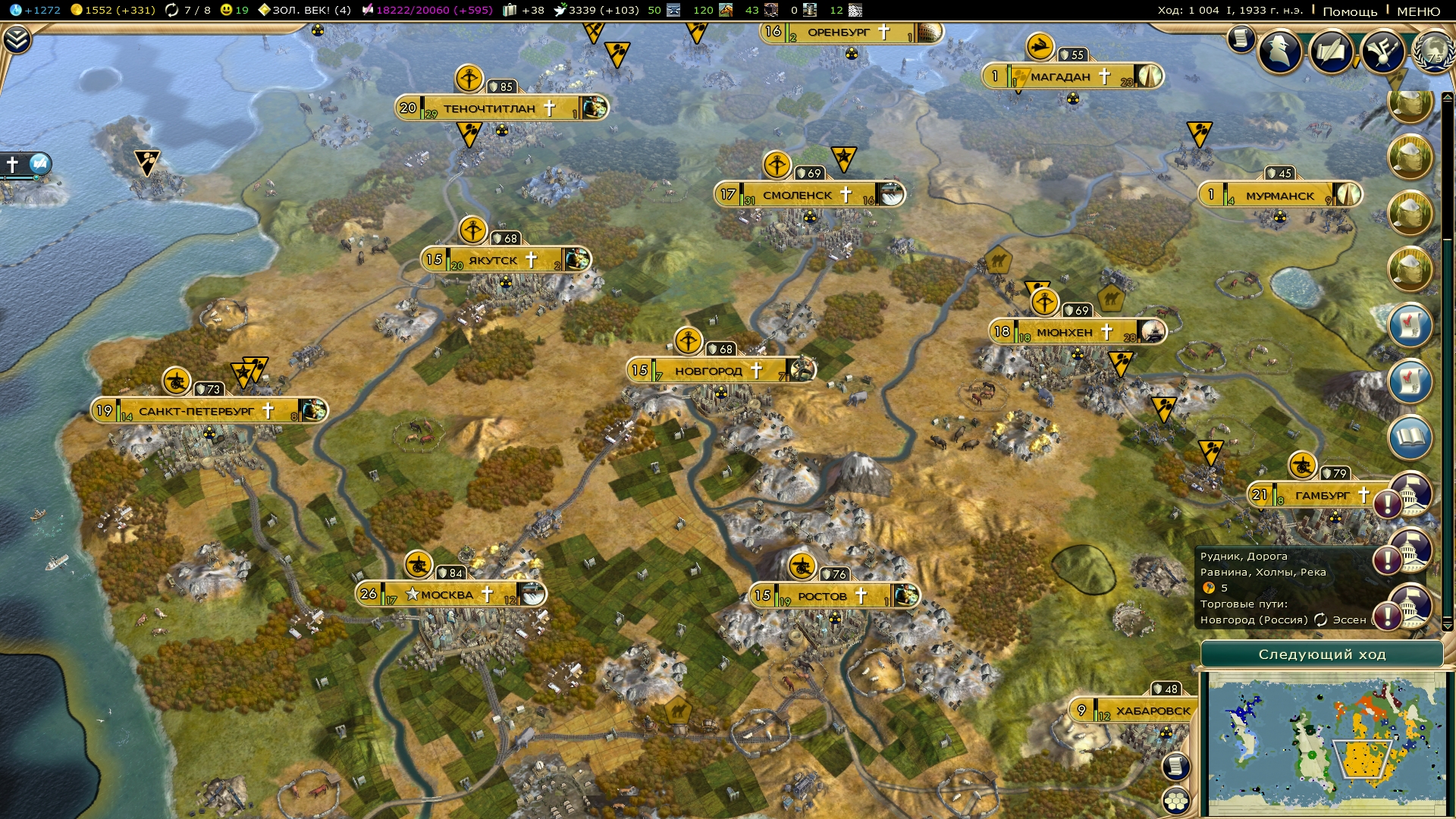 >можно строить дохуя городов Расстояние до столицы стоит содержания. Да и хуита полная, когда можно влепить город на клочке 2х1 клетки в пустыне. Посреди городов вероятного противника.