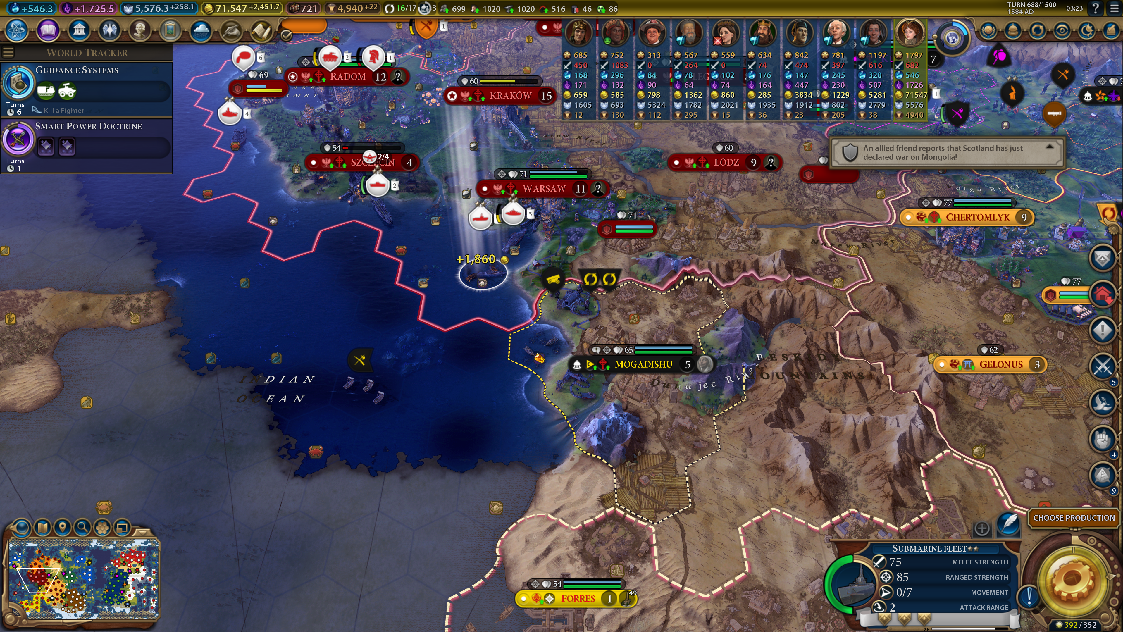 >>1281366 1. ИИ смотрит на общие темпы развития, и если он не вывозит конкуренцию по одной побед - направляет ресурсы на что-нибудь более достижимое. Это означает, что безусловная доминация игрока в науке вынудит все ИИ сократить чрезвычайные расходы на неё. 2. ИИ агрессирует против соседей с крайне слабой армией, притом разведку чужих финансов он не ведёт. То есть ему пофигу, что ты уже в ядерной эре и можешь скупить самолёты на аэродромы, которые будут нести кучу ядерных бомб, которые ты запас на зиму. Ядерную зиму. Нет армии - получай внезапную войну. Не поздоровался при встрече - получай просадку дипломатии и внезапную войну пикрил. Чем выше уровень сложности, тем агрессивнее ИИ.