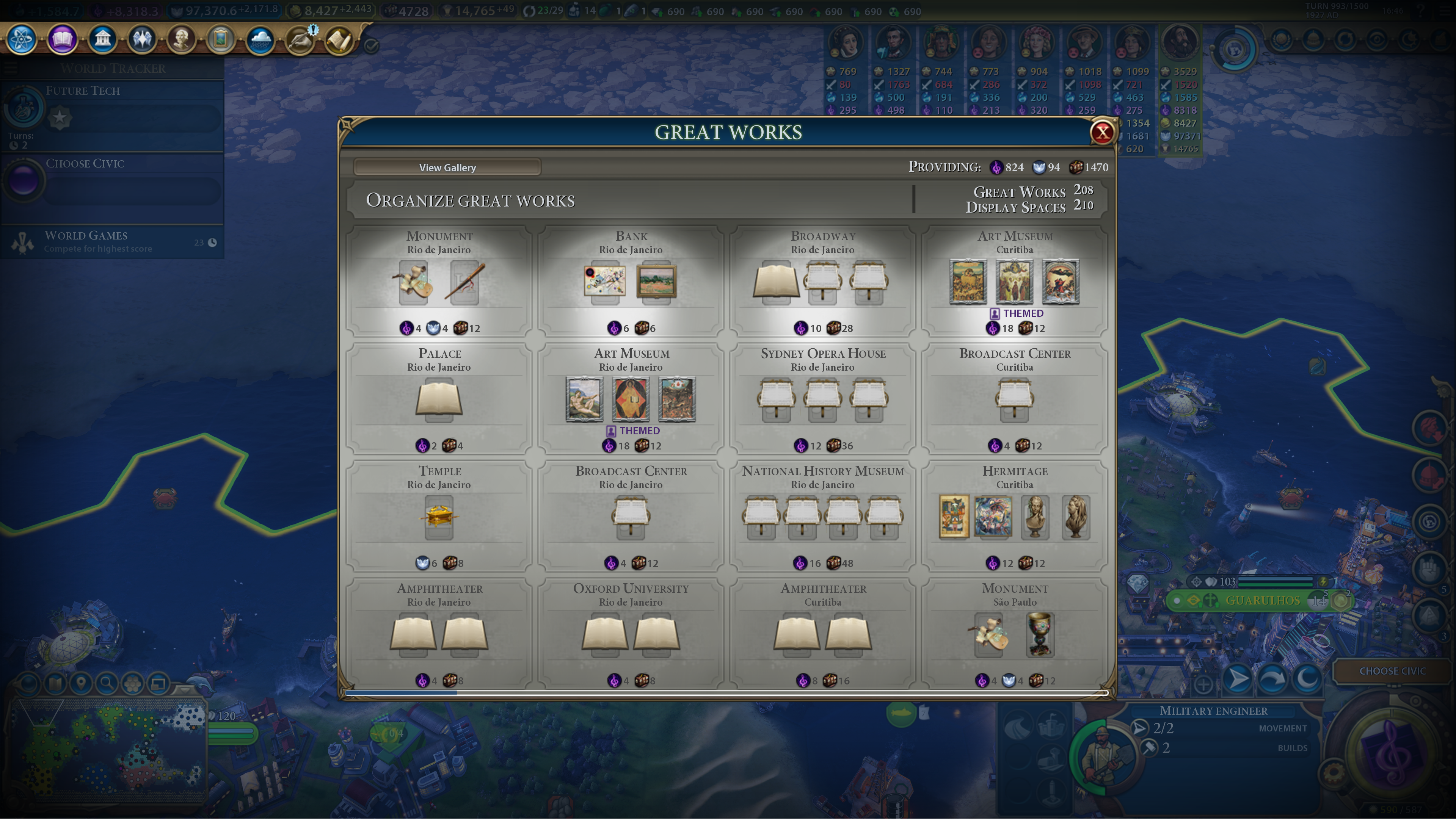 А вот на счёт культуры: в ванили великим "культуристом" можно сразу получить прирост, но это тухлый обмен, проще такого присоединить к городу. Есть политики и постройки при которых можно перевести жителей в "культуристов", равно преобразовывать молотки в культуру 25-50%. Есть технология на увеличение культуры за деньги, в том же столбце слева наверху где ты 100% ставишь на навуку, ты можешь поставить 90% на навуку и 10% на культуру. Но основным остаётся строительство культурных зданий, если есть возможность(изучена теха) - ускоряя их строительство за деньги.