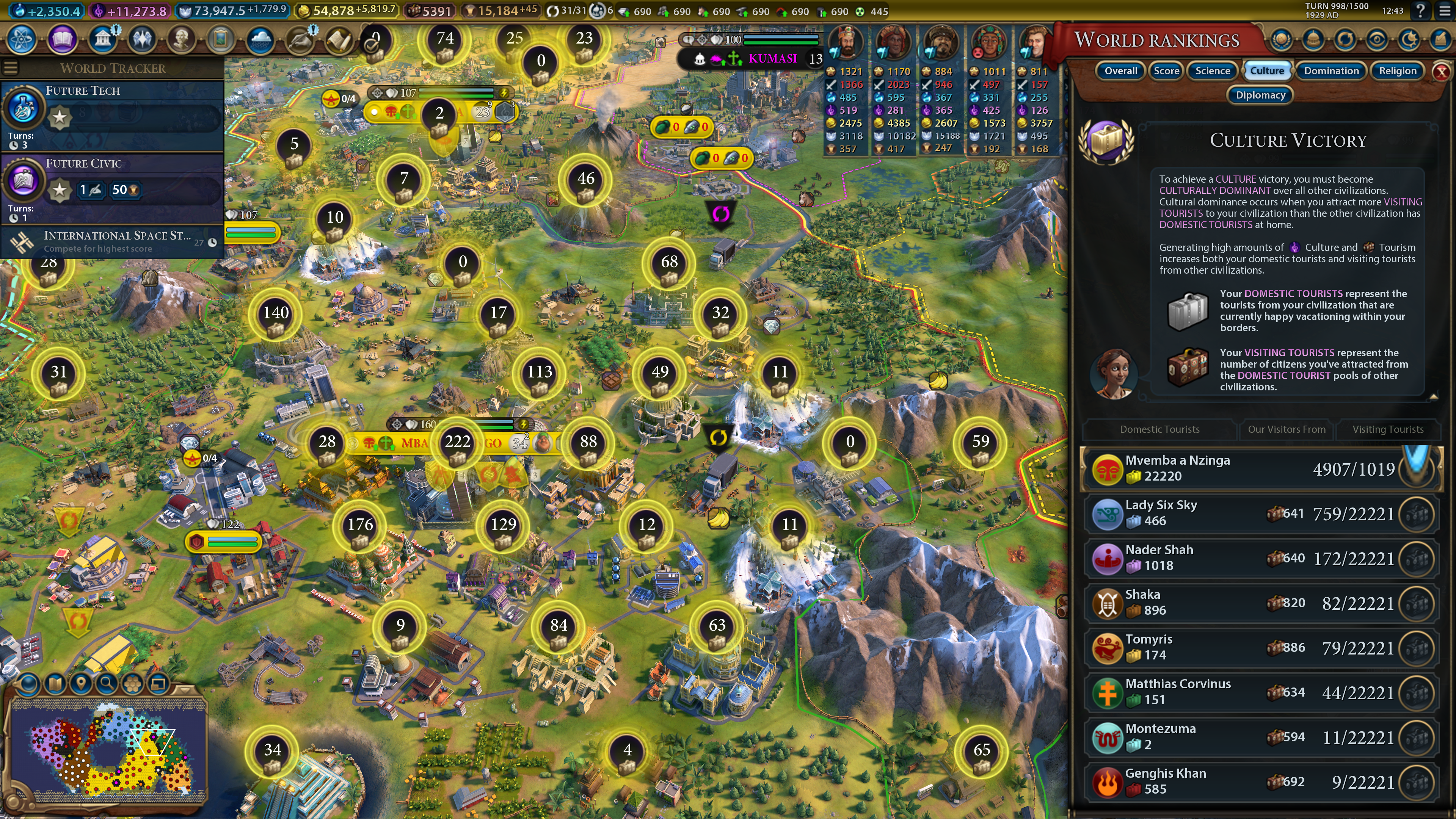 Шестëрка лучшая цива и псевдоисторическая песочница. Хотелось бы чуток побольше зданий и юнитов будущего. И чтобы ракетный крейсер был крейсером а не малым ракетным кораблëм, а стелс-технология давала стелс-бомбардировщик, а не просто реактивный.