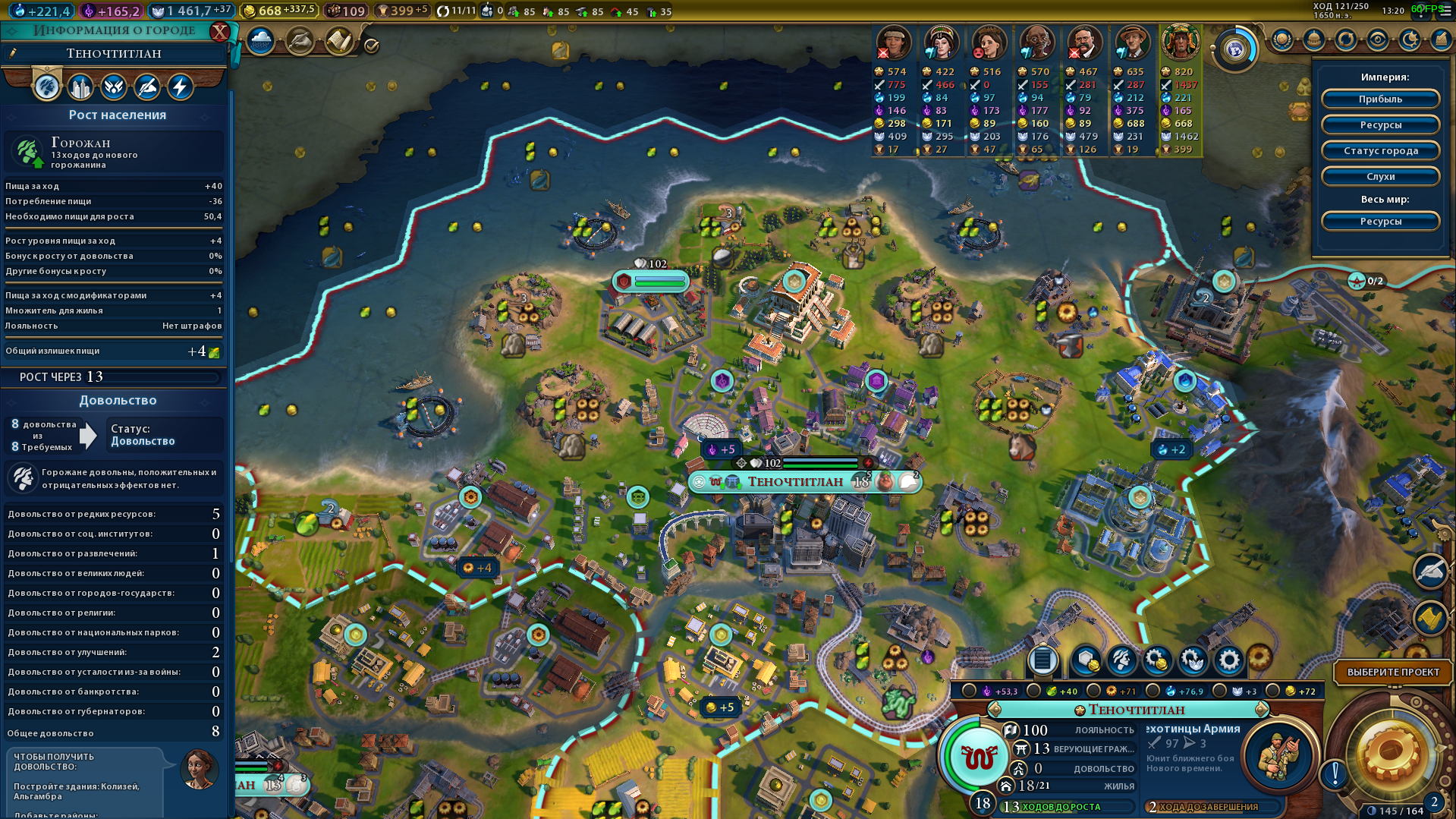 Наконец города разрастаются нормально, застройка выглядит бесшовно и красиво. По рекам можно плавать. Пока уже за это игра обходит шестерку. Только с лидерами какой-то кал намутили