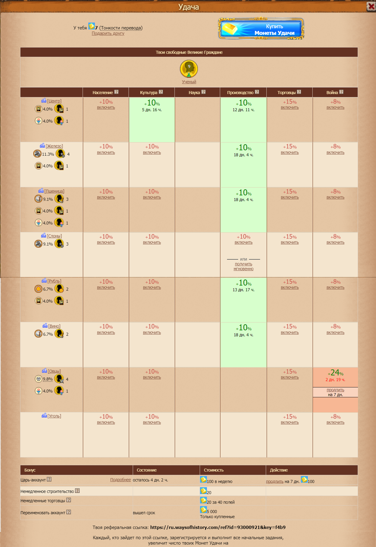 Также на втором скрине можно увидеть что в игре присутствует донат, с помощью которого можно увеличивать в % те или иные показатели городов, например у меня в некоторых пром.городах буст промышленности.