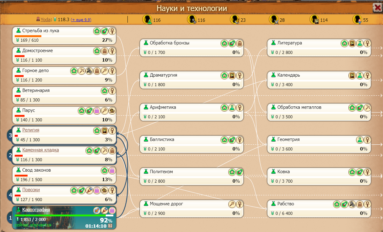 Также в игре как и в Циве есть великие люди, которые дают бонусы по тем или иным направлениям, а точнее: