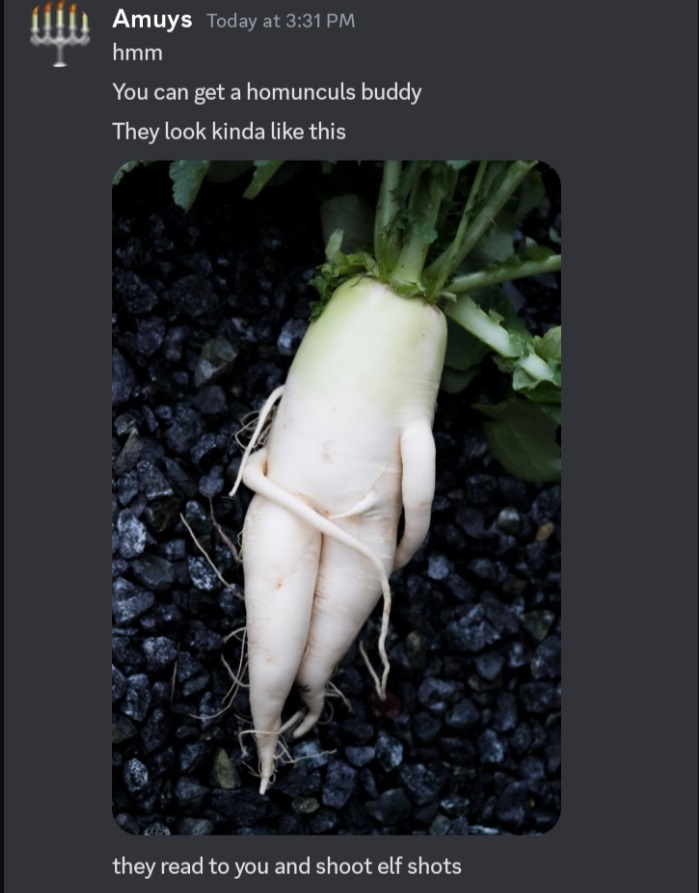 >>1270405 Шанс на увеличение путя смерти был в пятёрке точно, возможно, даже был в четвёрке. >>1270429 >ИНТЕРЕСОМ играть в неё буквально ГОДАМИ Пикрилейтед. >>1270595 У големов хуёвые статы, их только на рейдеров ронять. Настоящие ск делаются строго из немертвяков/недемонов/немагических шассей с сотней здоровья, всеми слотами и родными 14 единицами в атаке и защите.