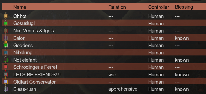 >>1272249 Ну поехали. При старте игры дается случайная нация. Или можно самому себе создать что-то так? Люди видел играют своими, значит можно. Почему тут выбор их трех, а не просто "создать кастомную нацию + бог"