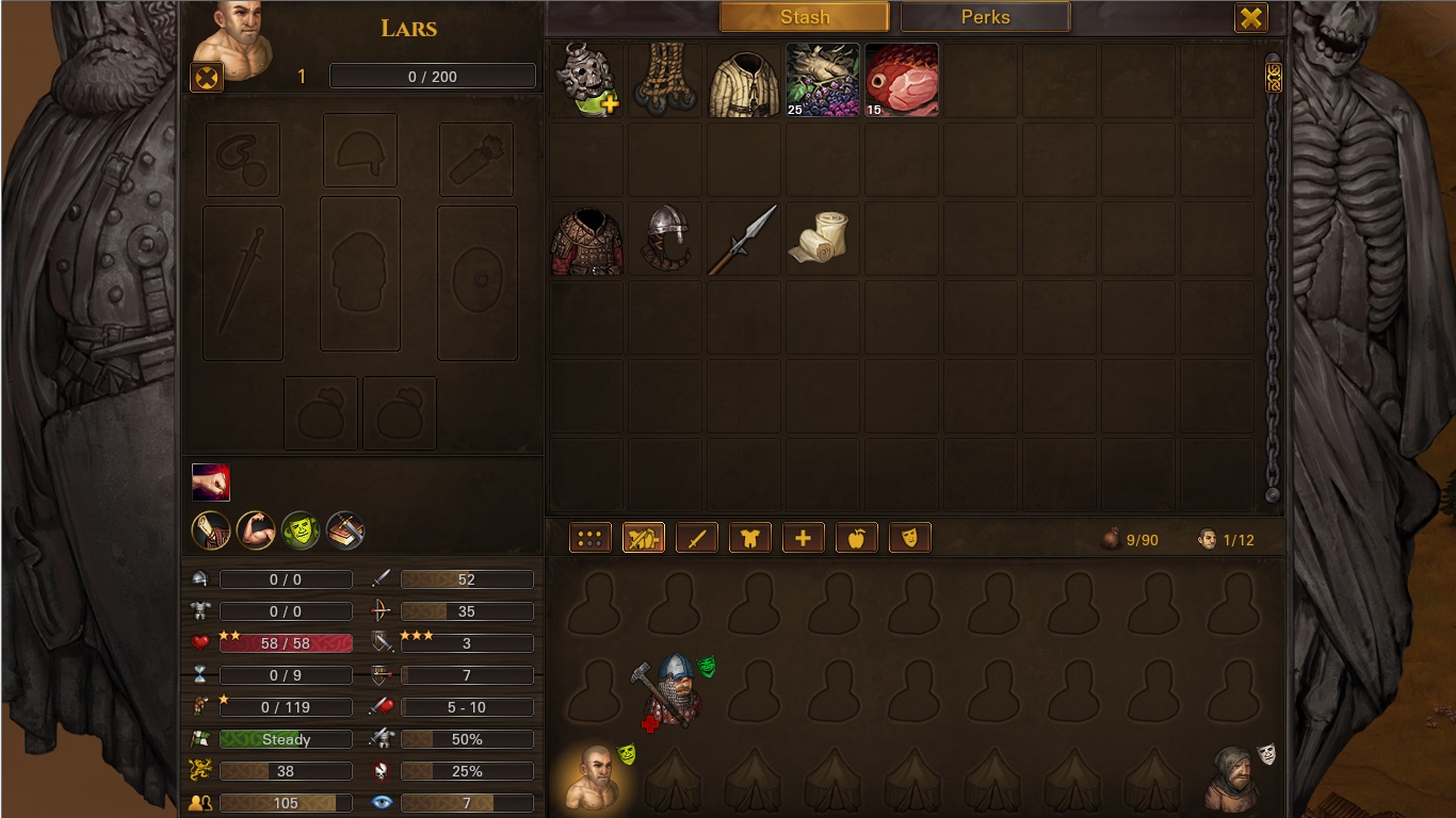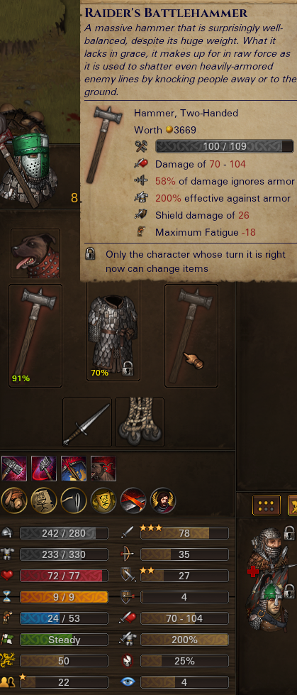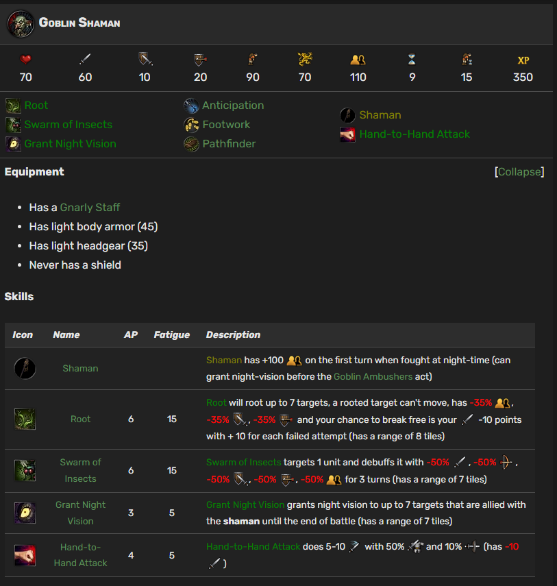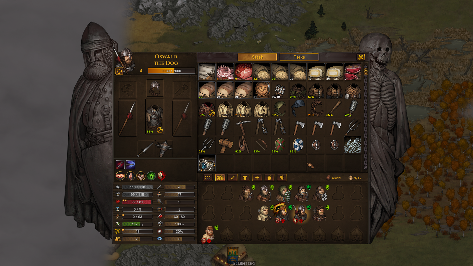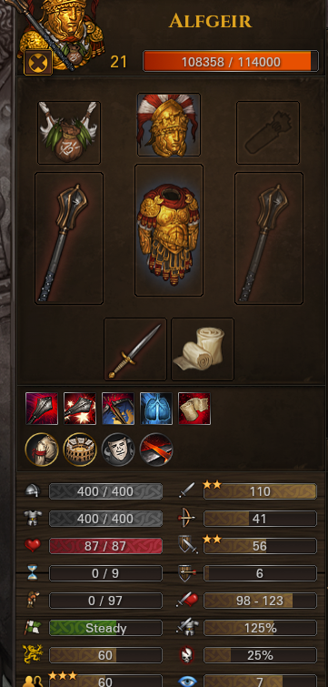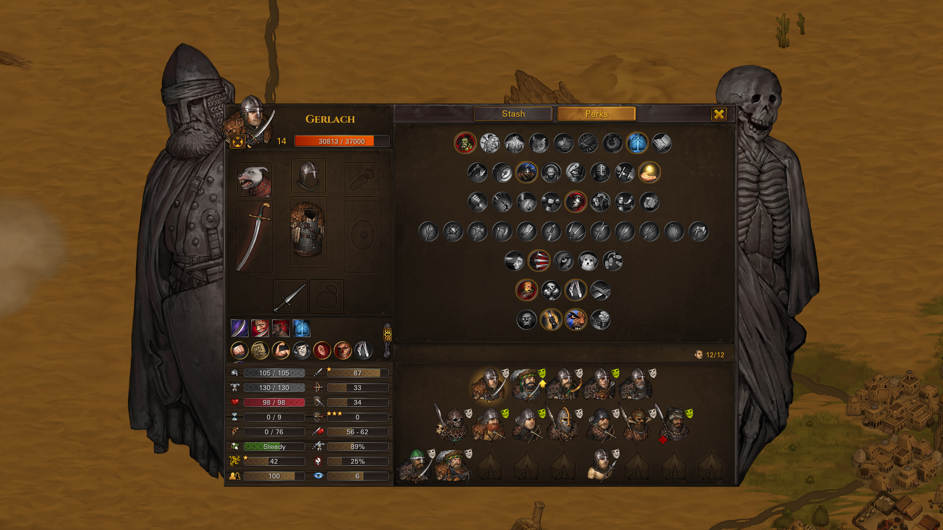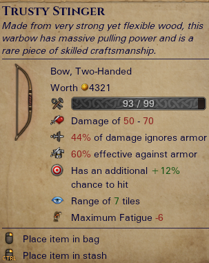 Покопался в файлах, легендарную валыну новую нашёл. Censer of the Diviner (Кадило Предсказателя) Урон 60-110 Игнор брони 30% Урон по броне 110% Шанс в голову попасть +15% Бьёт на 2(!) клетки и срёт миазмой. Что-то на уровне обычного двуручного флеила только на две клетки бьет и миазму вешает на тайл куда ударяет на 3 хода. Еще пробития брони бонусного нет если в голову попадаешь как у обычного.