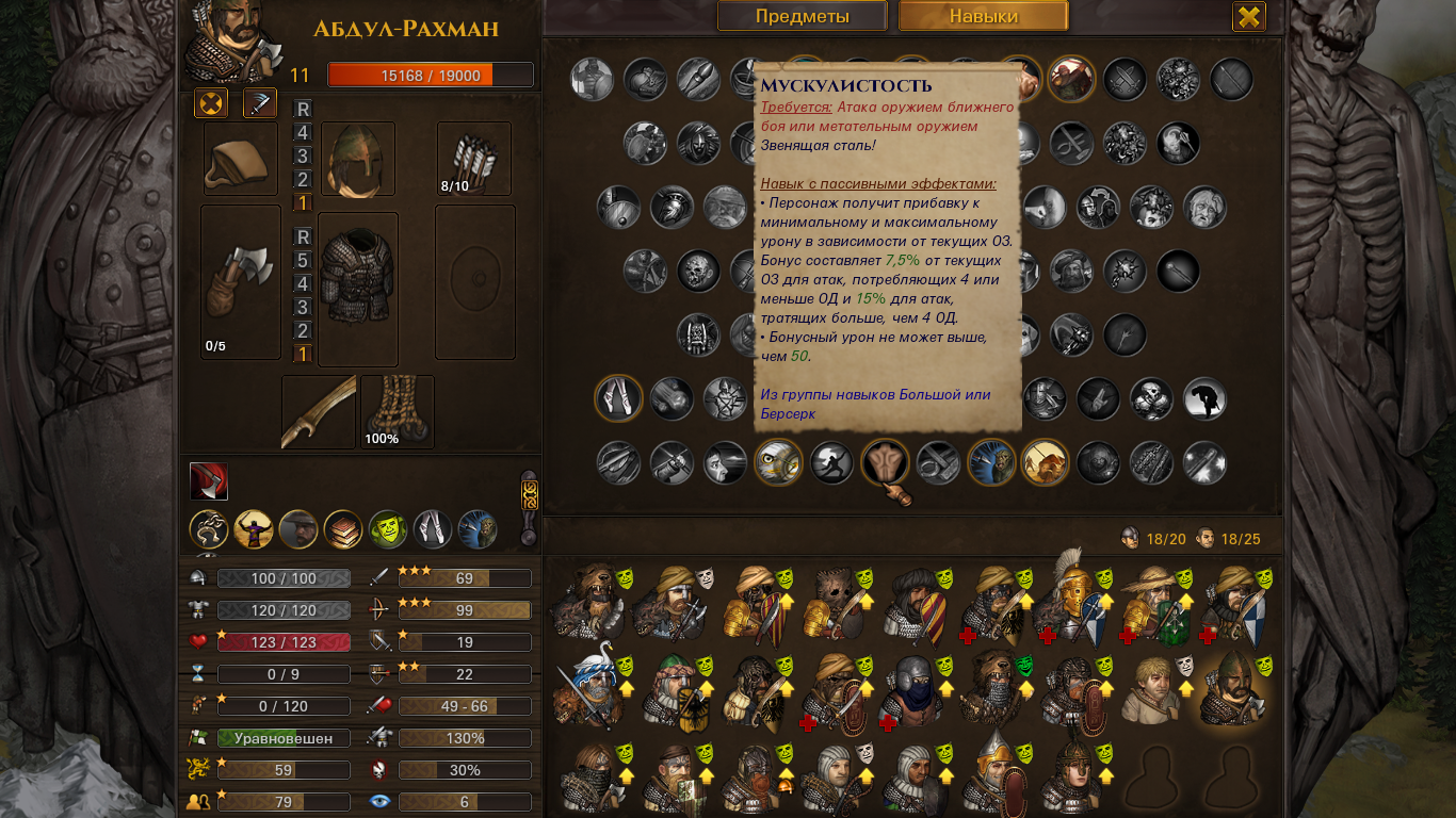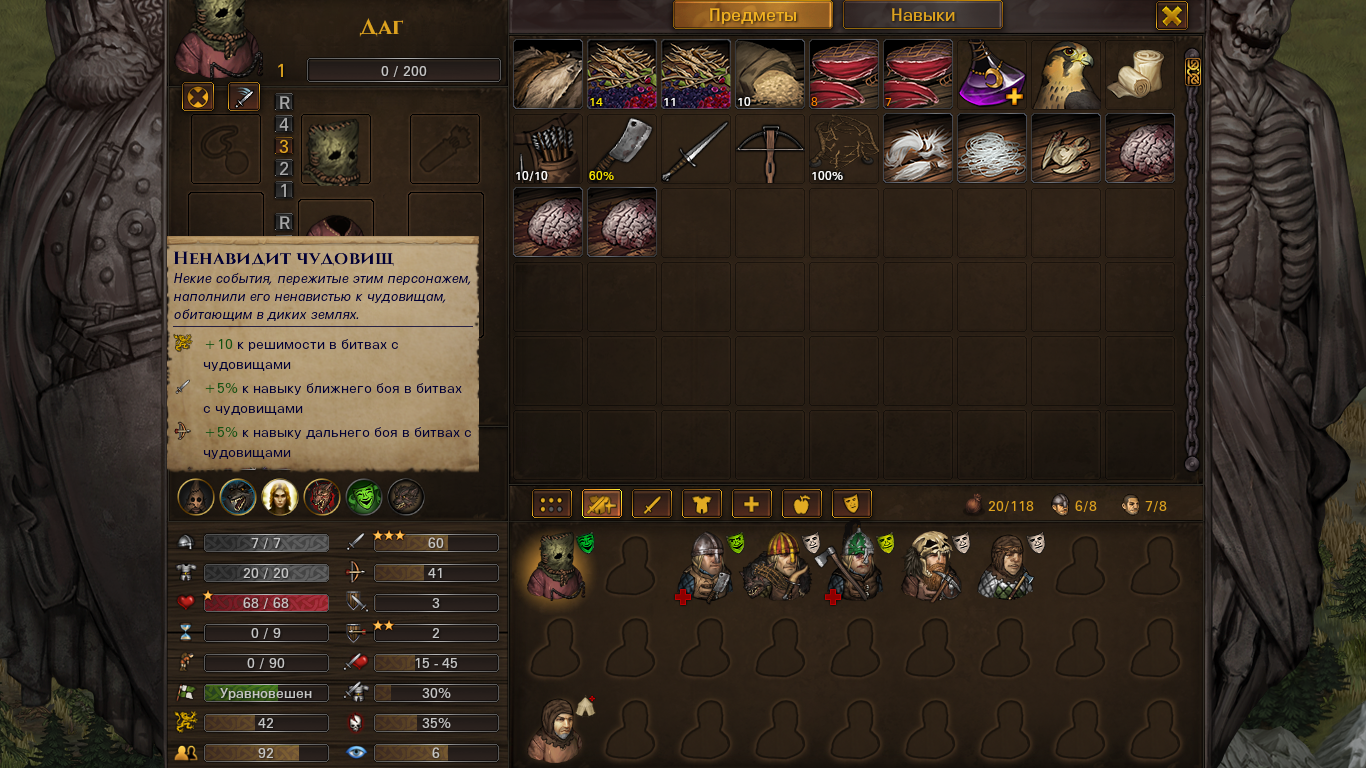 Сначала мы ищем подходящего братка 100 дней, потом ему чтобы от зелий оклематься нужно 100 дней можно выпить все зелья и потом выпить воду с дерева. А потом у нас заканчивается весь контент и челлендж, т.к. ключевые зелья - с кракена и библиотеки. В любом случае даже в ультрафайтах типа "заманить короля варваров на варварский же город с плеторой чузенов" - мутант будет работать тупо как танк, т.е. убирает собой в файте ну максимум 5 противников, если вы держите его рядом со строем - его никто не будет фокусить, если выводите вперед - его обходят. В итоге этот ориджин работает только в лейтгейме, когда вы и так уже все зачистили, авчомсмысл. Зелья надо было делать сильнее, эти "+5% проникающего урона" и "+10 хп реген" вообще ни на что не влияют, а вот дебафф от минус морали остро чувствуется, ну лан, было весело. Мб попробую на этом сейве подождать турнир, но есть ощущение что и он ебловозный будет.