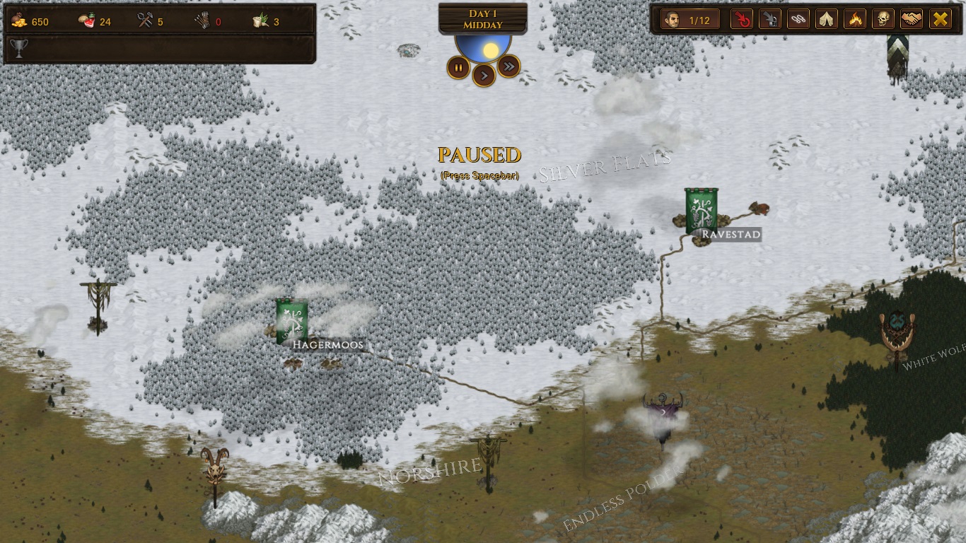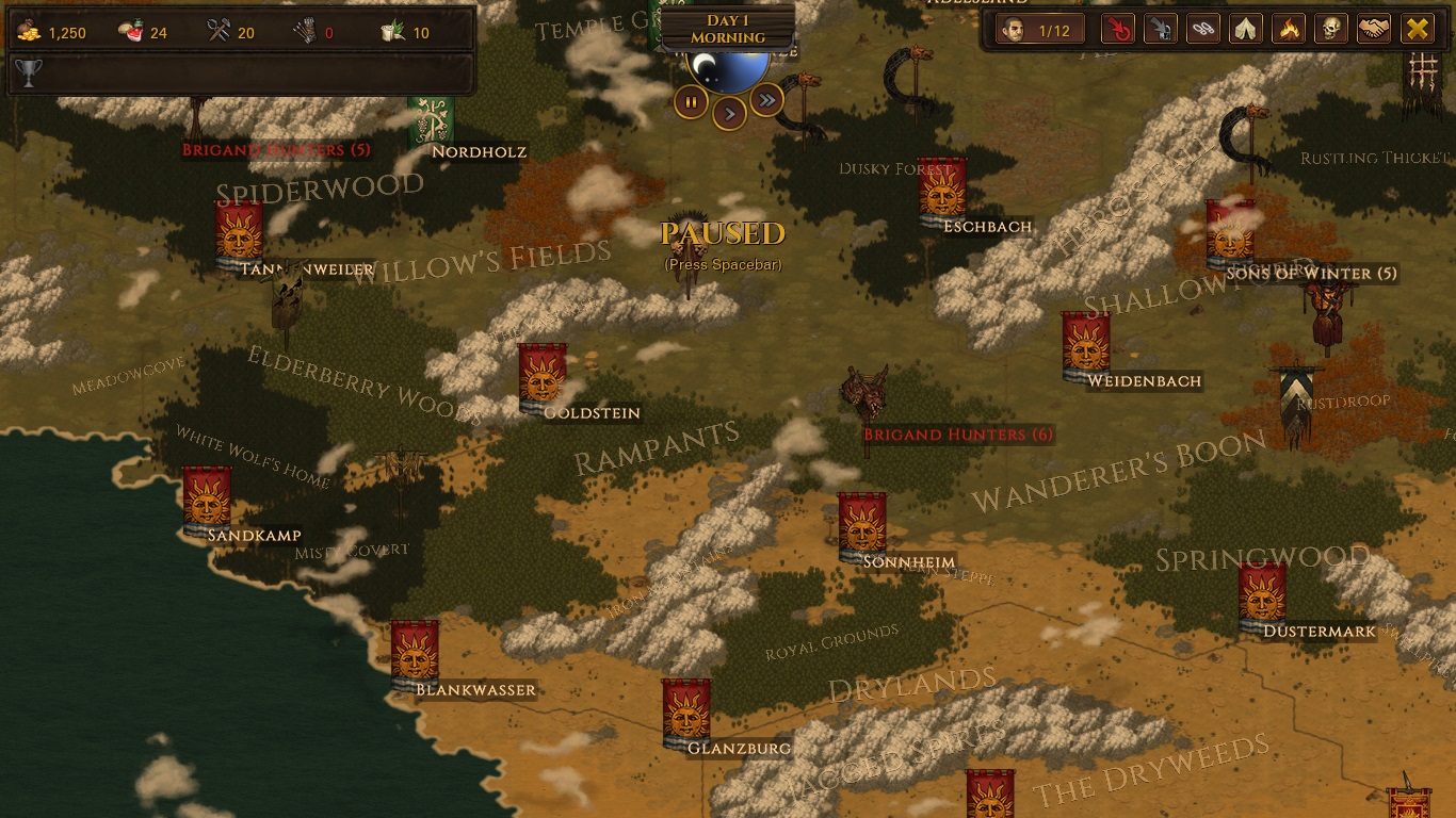 Старт без крутых механик конечно, но в меру усложняет игру низкой моралью и недоступностью трети карты на ~100 дней. Ролеплей чисто, ему ж не просто так 2 черепка дают.
