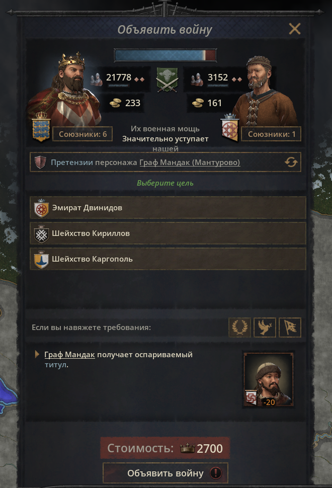 Как захватывать герцогства в Крусадёрах? Апнул королевство и даже сделал парочку у себя. Как мне расширяться? Через претензии от главы конфессии не получу: штраф -1000 т.к я король, а он герцог; дочерей своих не выдают, может мне подсовывать им своих наташек?