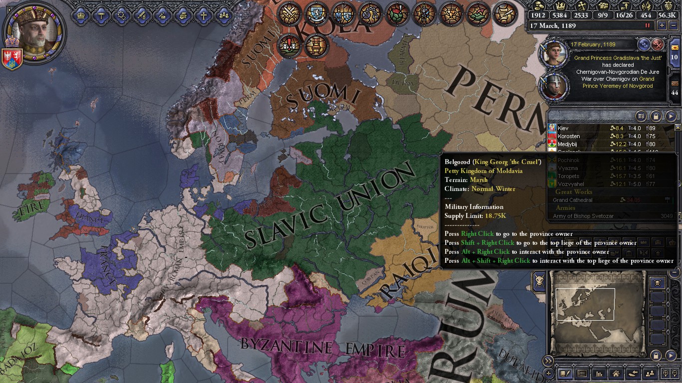 Q: На какой сложности мне рекомендуется играть и с какой страны начинать? A: Рекомендуется начинать со средней сложности сильной страной. • EU4 — Кастилия, Османы, Франция; • Victoria 2 — Великобритания, США; • HOI4 — США, Италия; • IR — Рим, диадохи; A: CK2 в противоположность другим играм линейки, наоборот стоит начинать с самых низов, дабы понять все аспекты игры. Самый оптимальный старт с минимальным риском слить партию — один из Ирландских графов, желательно, с 1066-го года, дабы не застать набеги викингов, которые доставят немало хлопот новичку.