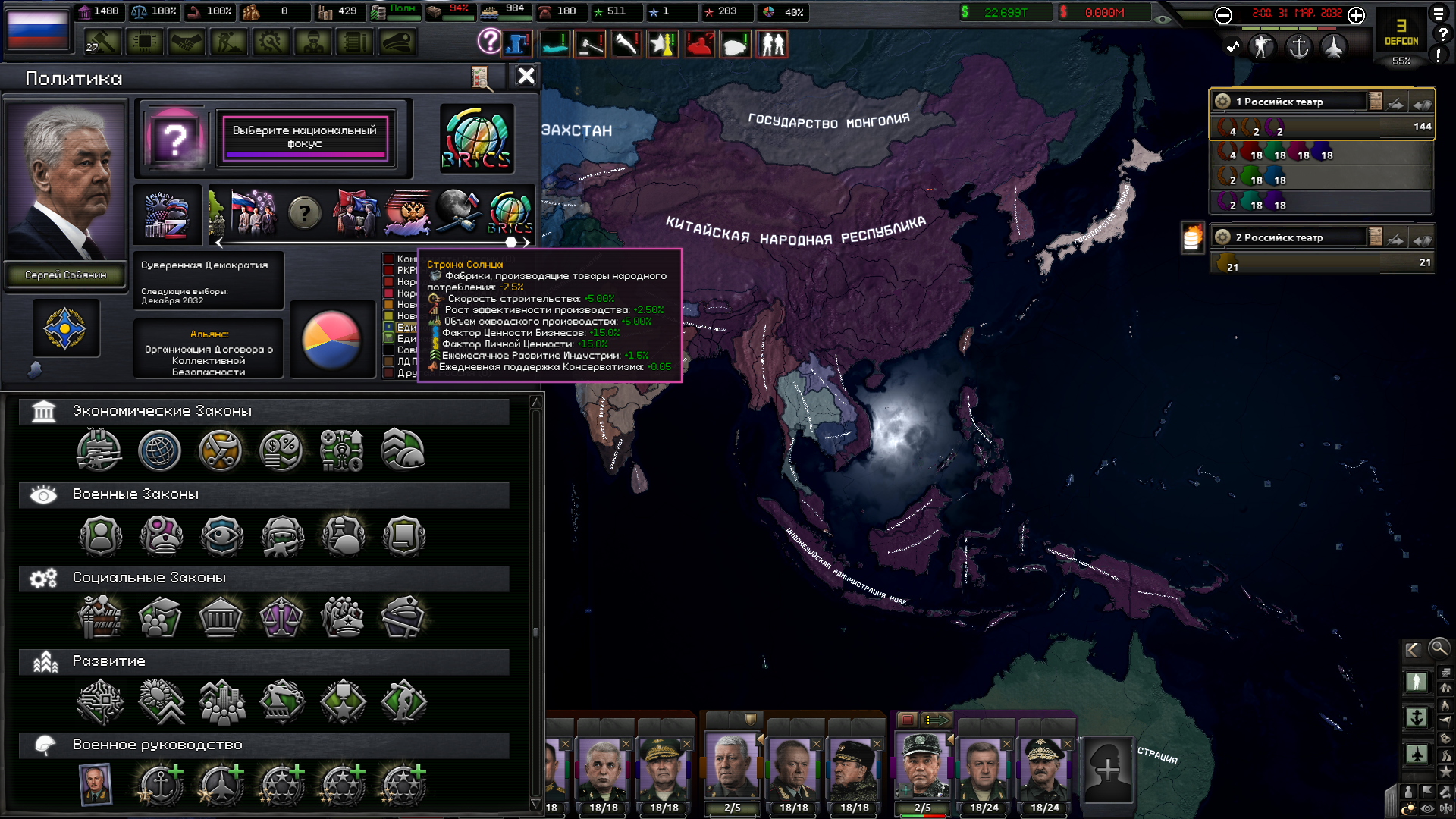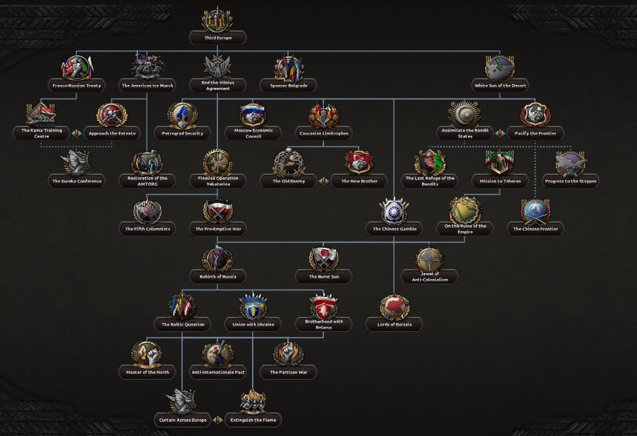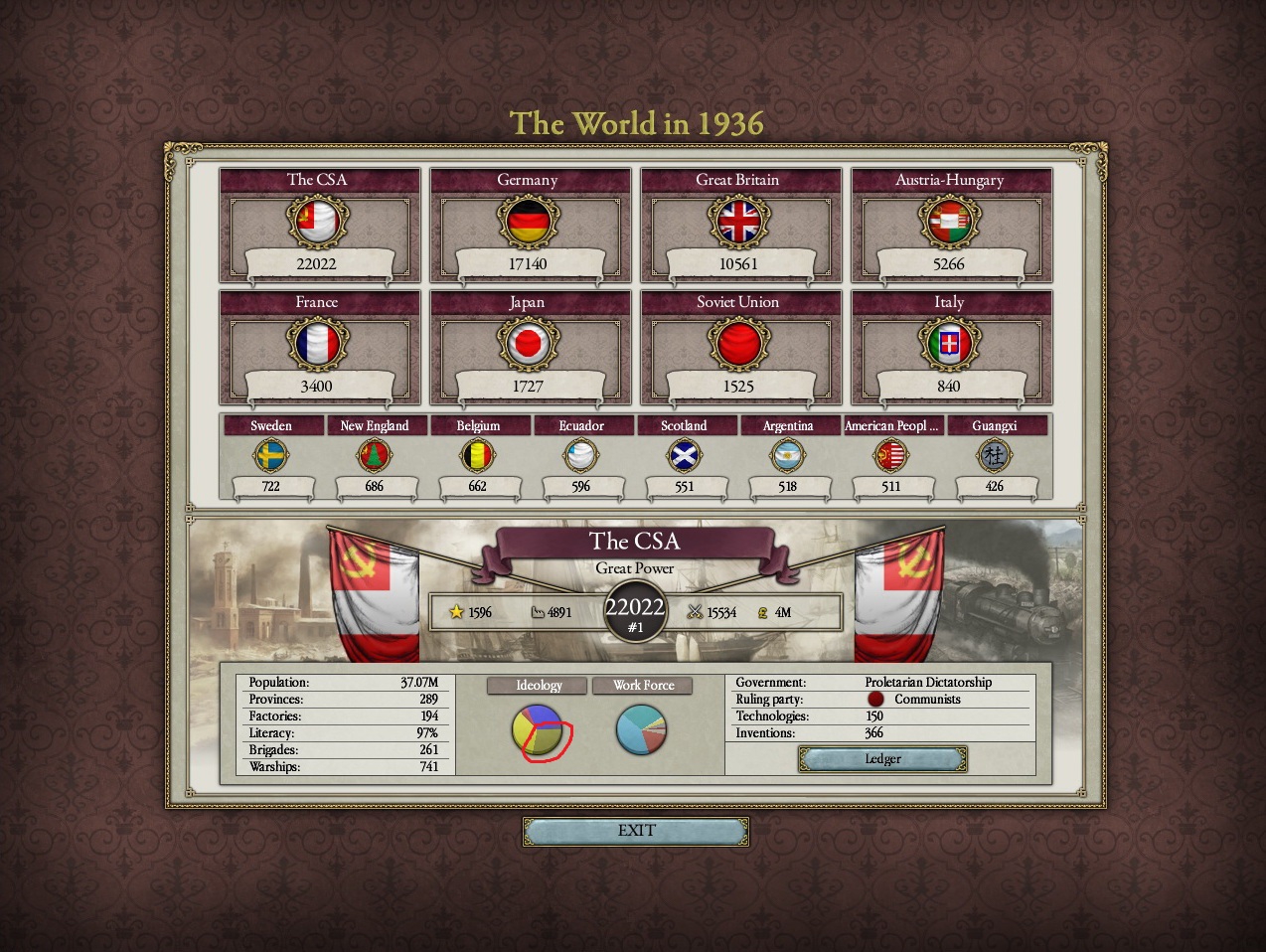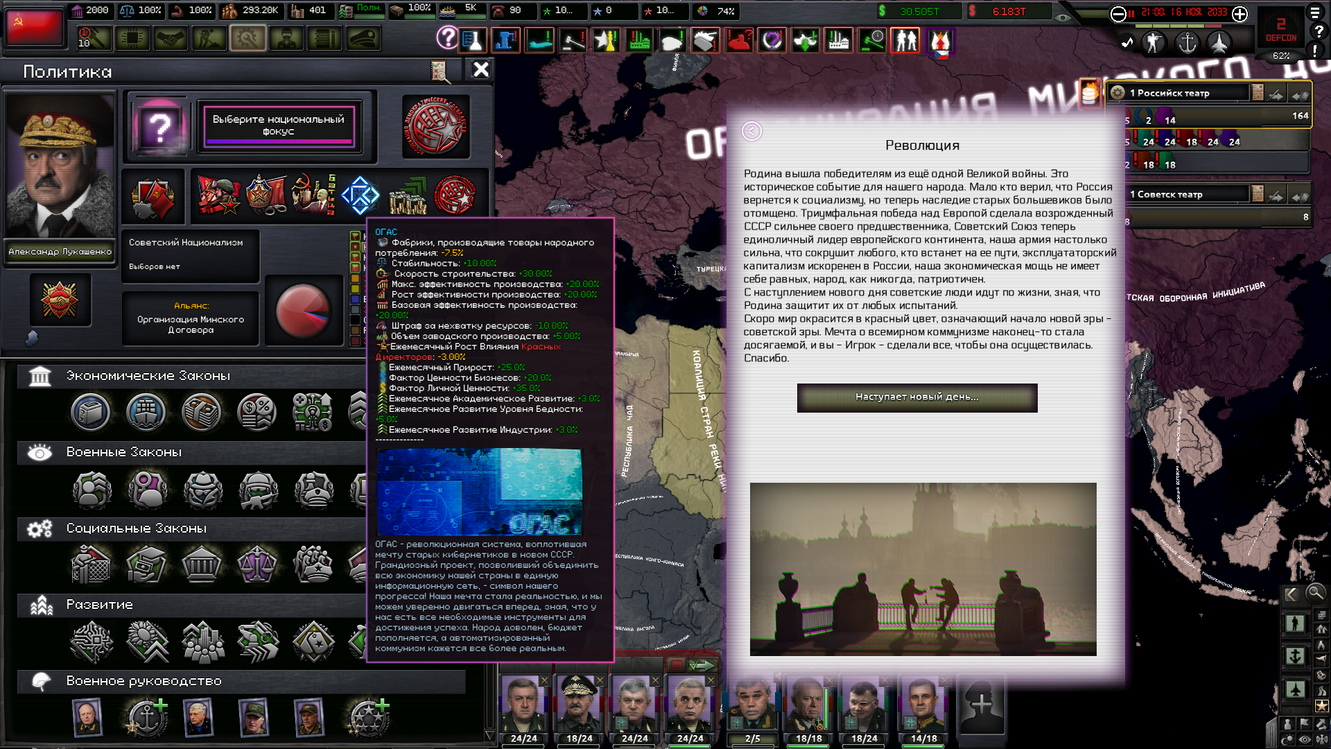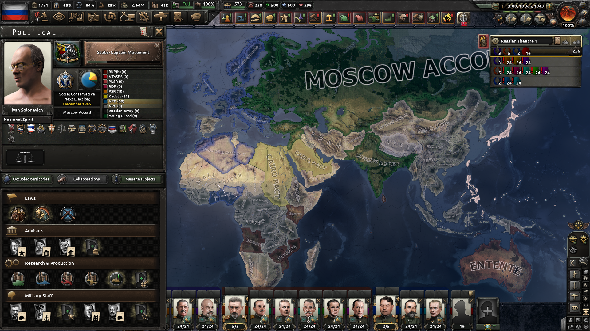 Друзья, скиньте, пожалуйста, у кого есть, пикчу-схему со всеми путями Кирии в EaW. Я откатал за Райзин Сан - матриарха и скажу вам - это база. Революция прошла полный цикл, а я ещё ачивку получил внутримодовую за это! >>1285996 Это я писал. Эквестрия таки одолела Империю Грифонов и я в одиночку экстреминировал неолиберальную военную машину. Зебрику зачистил полностью, а Грифонию - наполовину, т.к. после взятия грифенхейма игра вылетела, оставалось буквально полтора месяца до 1026 года. На этом я и закончил партию - победа очевидна, а я устал. Суммарные потери, с учётом ядерных и термоядерных бомбардировок - миллионов 50-70. Из ~300 живущих в понимире. Сейчас катаю за Кирию по пути НАКП, то бишь севера. Джва вопроса конкретно по ним - какие пути кроме корпоративизма есть? Я так понял, если быстро не национализировать территорию остальной Кипит, то будет восстания - может ли из этого что-то выйти? И ещё - можно ли избежать корпоративной войны, если равномерно распределить им провинции? Ещё, не по НАКП - как получить кадетскую республику? Я так понимаю, надо играть за гармонистов, но провалить Великий Скачок Вперёд. Но не до гражданской войны, а просто не успеть. А чтобы получить нейтралов надо спровоцировать войну двойного отделения, играть за царство, но всячески щемить и попускать гармонистов? У восставшего при Райзин Сан Благоухания есть контент? На гражданскую войну точно есть. В случае победы будет паззитиыный дем. социализм, да? И что за путь Третьей Республики? И у гармонистов с удачным Скачком прям на все на все страны Зебрики есть кастомные марионетки? А все эти милипиздрические островки тоже к Зебрике относятся?