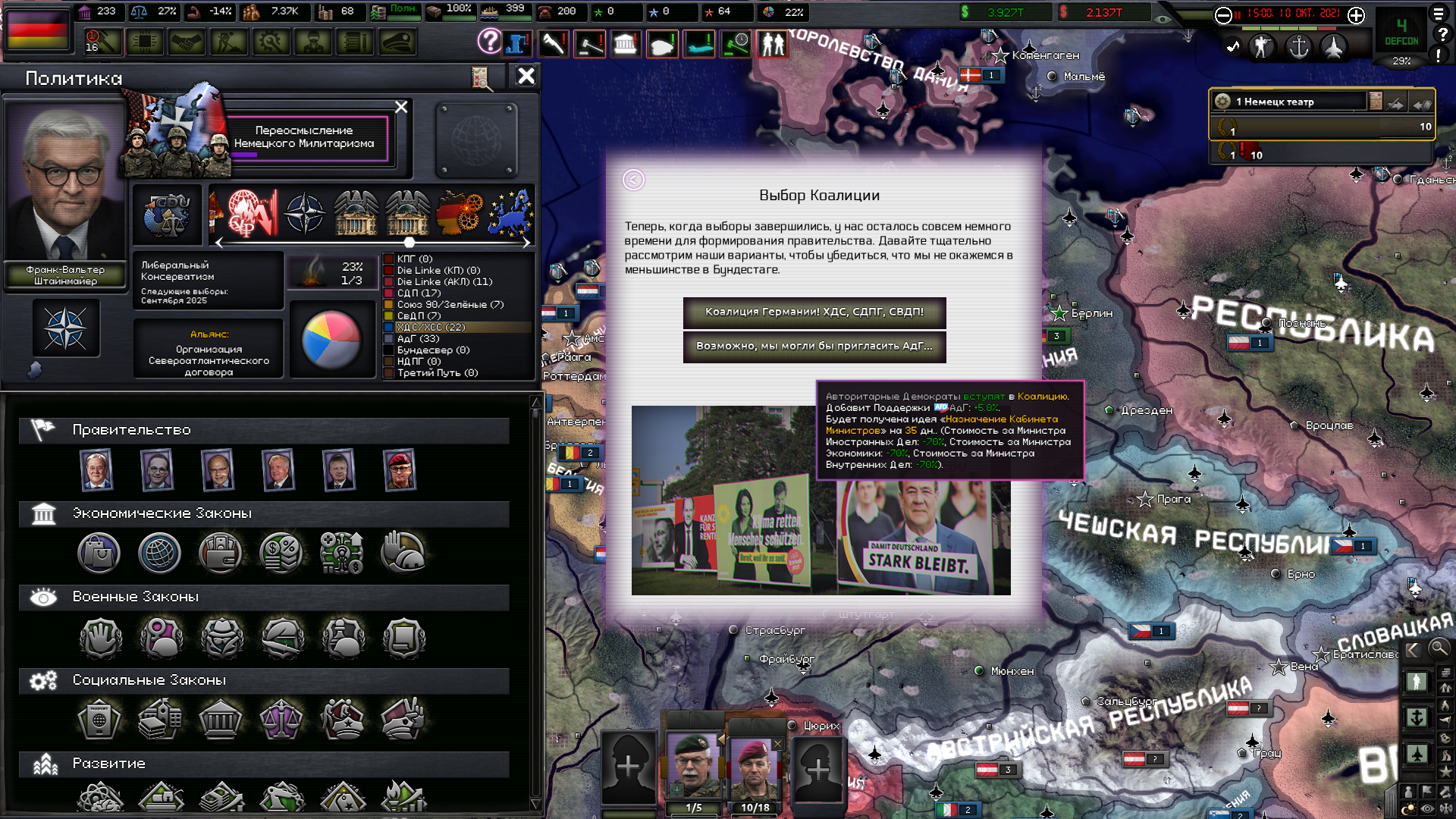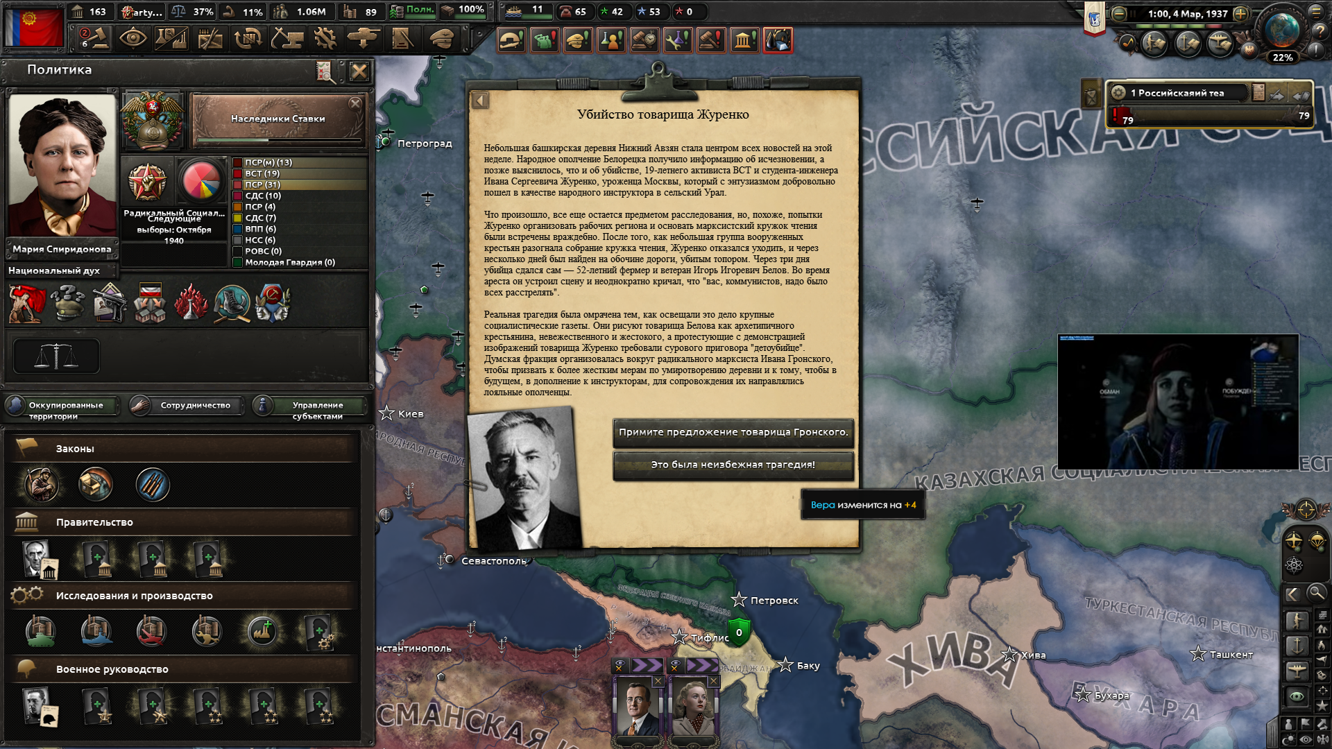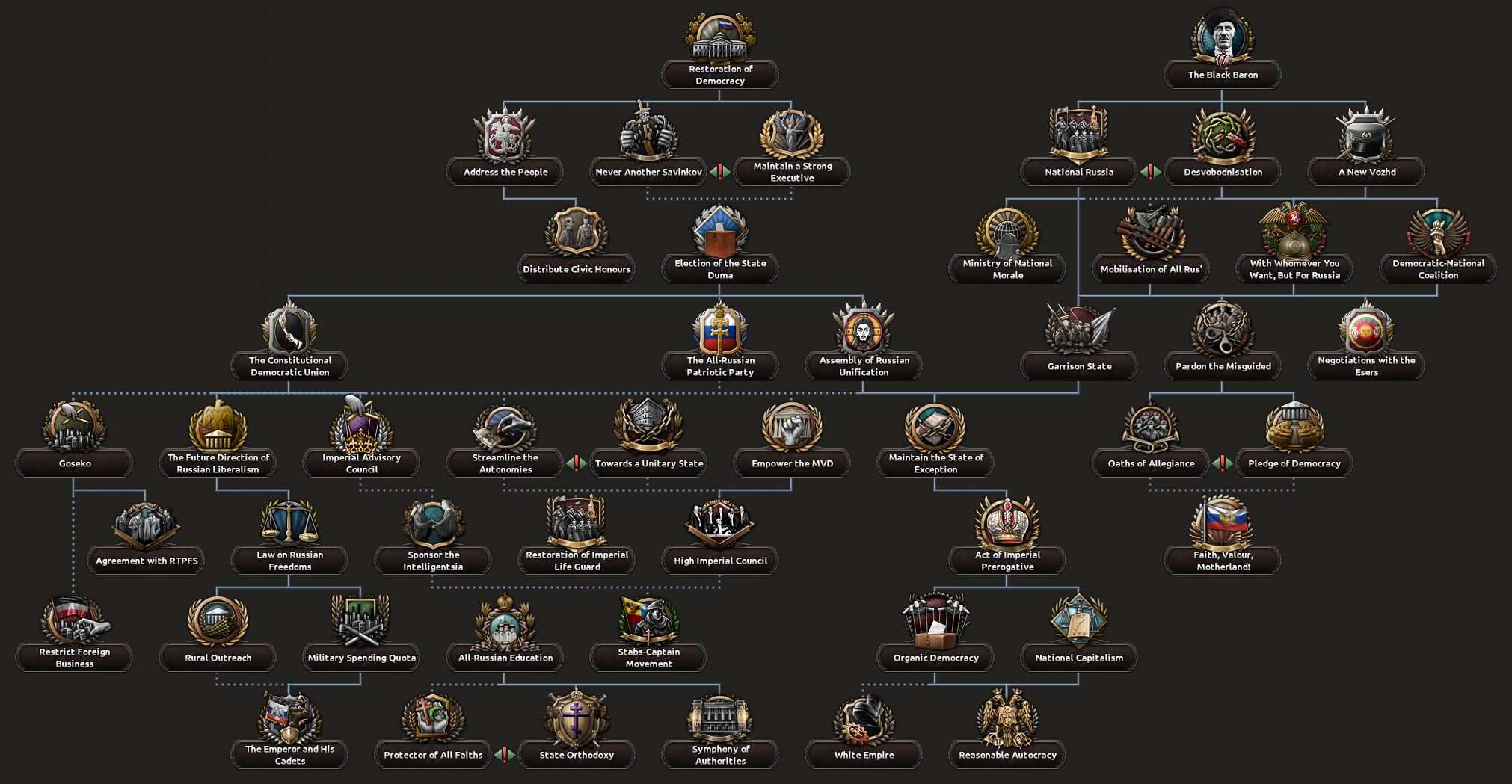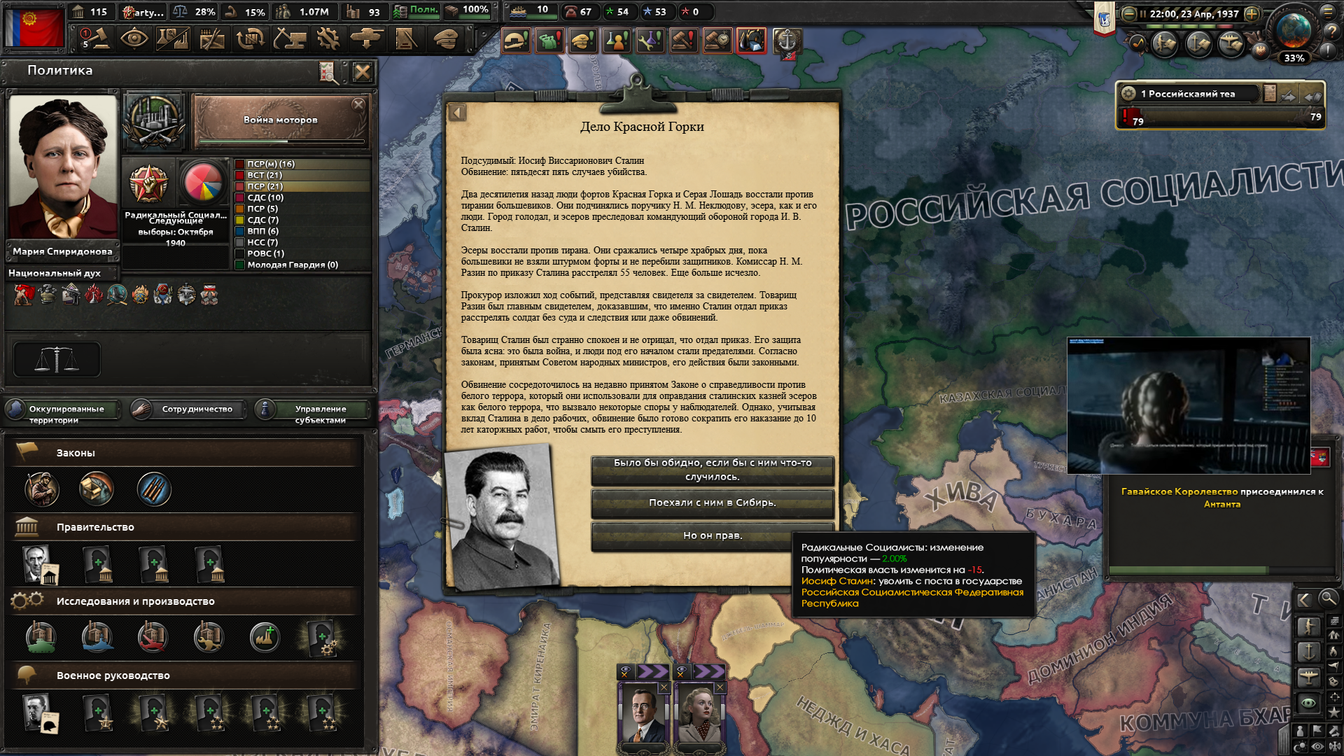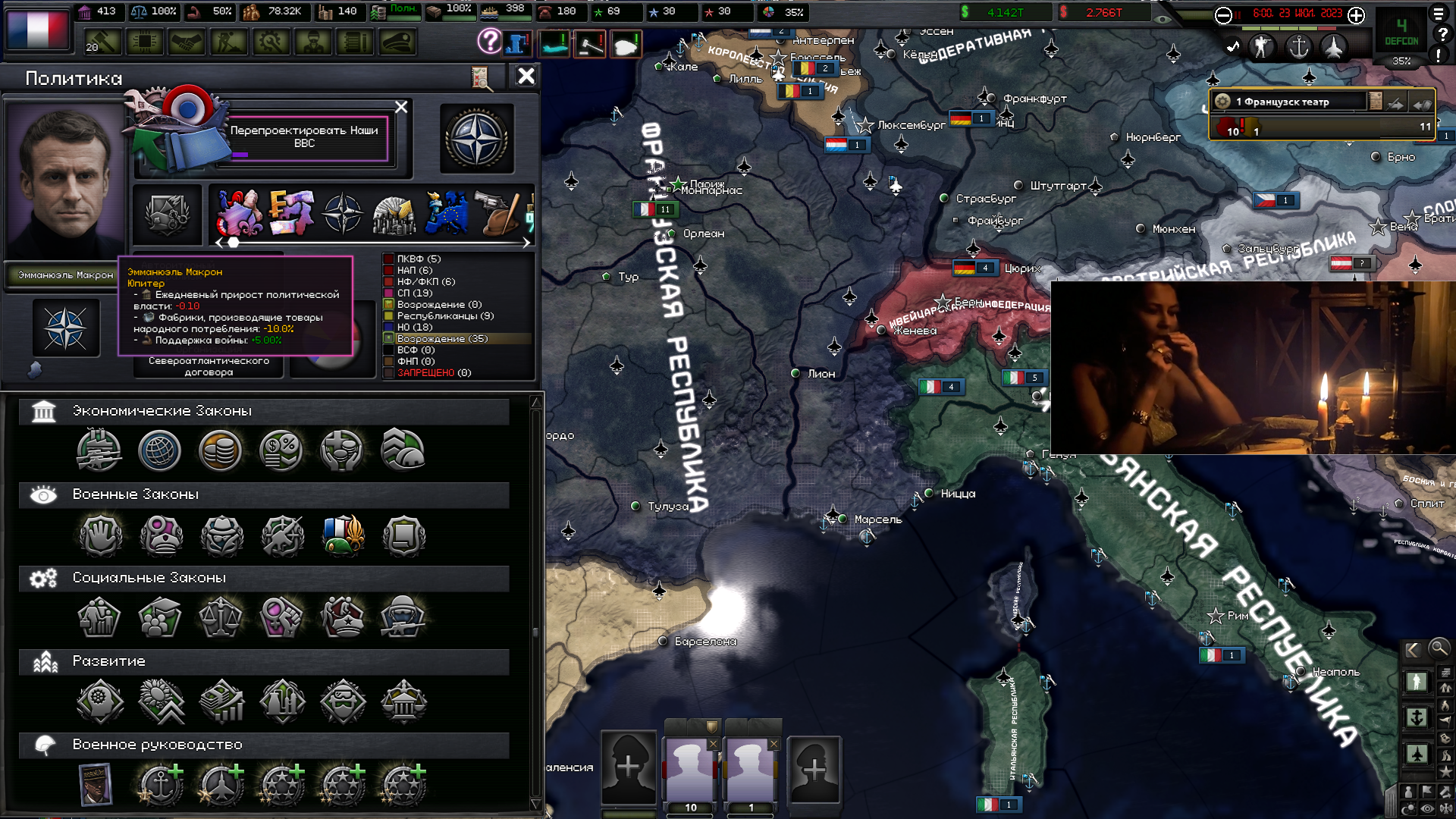 Друзья, скиньте, пожалуйста, у кого есть, пикчу-схему со всеми путями Кирии в EaW. Я откатал за Райзин Сан - матриарха и скажу вам - это база. Революция прошла полный цикл, а я ещё ачивку получил внутримодовую за это! >>1285996 Это я писал. Эквестрия таки одолела Империю Грифонов и я в одиночку экстреминировал неолиберальную военную машину. Зебрику зачистил полностью, а Грифонию - наполовину, т.к. после взятия грифенхейма игра вылетела, оставалось буквально полтора месяца до 1026 года. На этом я и закончил партию - победа очевидна, а я устал. Суммарные потери, с учётом ядерных и термоядерных бомбардировок - миллионов 50-70. Из ~300 живущих в понимире. Сейчас катаю за Кирию по пути НАКП, то бишь севера. Джва вопроса конкретно по ним - какие пути кроме корпоративизма есть? Я так понял, если быстро не национализировать территорию остальной Кипит, то будет восстания - может ли из этого что-то выйти? И ещё - можно ли избежать корпоративной войны, если равномерно распределить им провинции? Ещё, не по НАКП - как получить кадетскую республику? Я так понимаю, надо играть за гармонистов, но провалить Великий Скачок Вперёд. Но не до гражданской войны, а просто не успеть. А чтобы получить нейтралов надо спровоцировать войну двойного отделения, играть за царство, но всячески щемить и попускать гармонистов? У восставшего при Райзин Сан Благоухания есть контент? На гражданскую войну точно есть. В случае победы будет паззитиыный дем. социализм, да? И что за путь Третьей Республики? И у гармонистов с удачным Скачком прям на все на все страны Зебрики есть кастомные марионетки? А все эти милипиздрические островки тоже к Зебрике относятся?