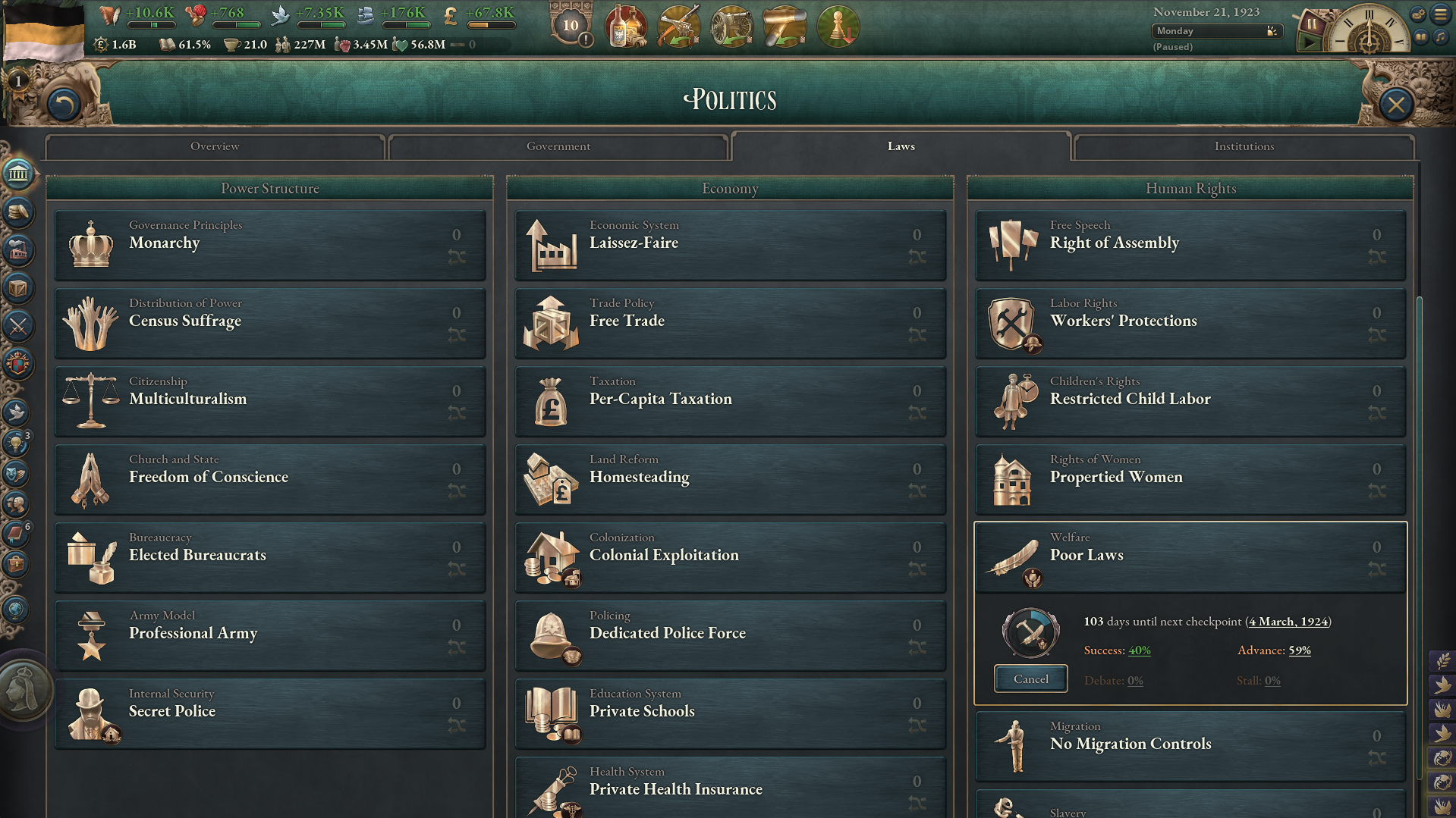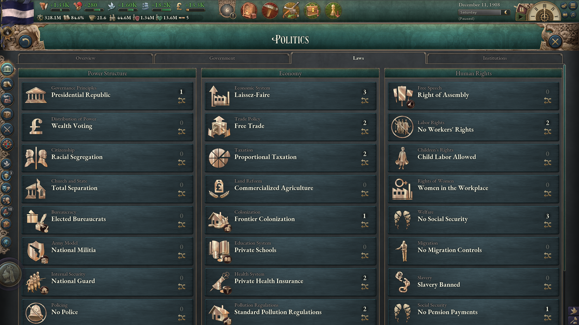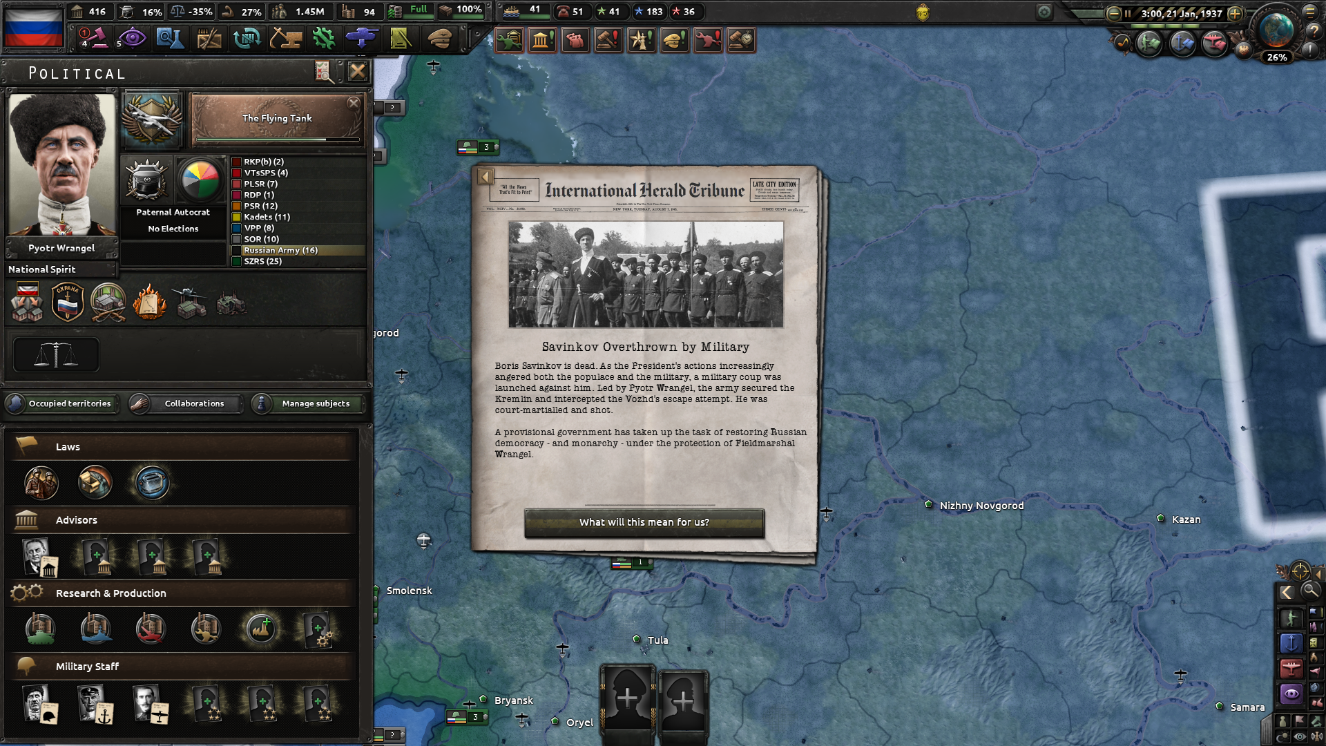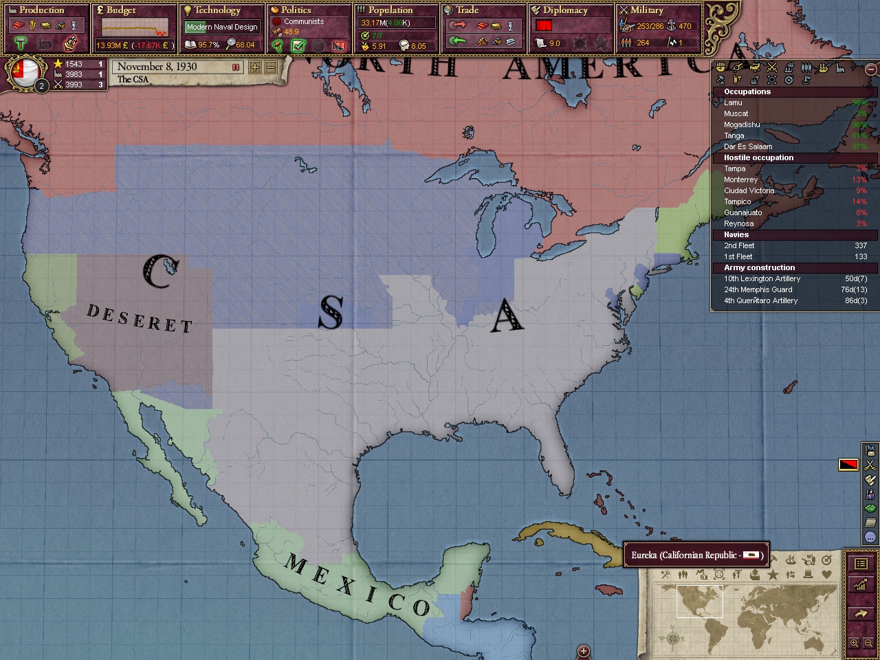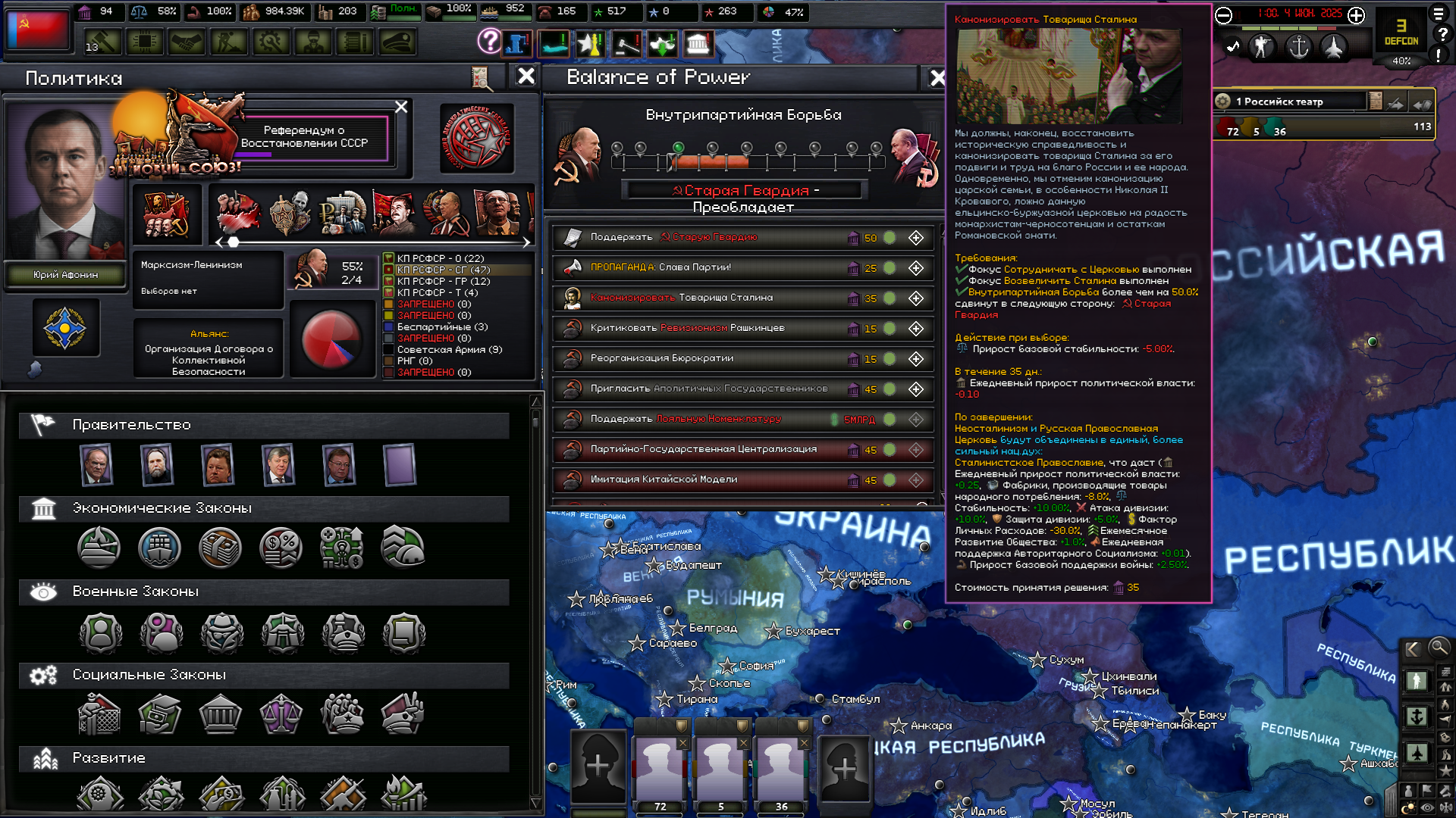 Друзья, скиньте, пожалуйста, у кого есть, пикчу-схему со всеми путями Кирии в EaW. Я откатал за Райзин Сан - матриарха и скажу вам - это база. Революция прошла полный цикл, а я ещё ачивку получил внутримодовую за это! >>1285996 Это я писал. Эквестрия таки одолела Империю Грифонов и я в одиночку экстреминировал неолиберальную военную машину. Зебрику зачистил полностью, а Грифонию - наполовину, т.к. после взятия грифенхейма игра вылетела, оставалось буквально полтора месяца до 1026 года. На этом я и закончил партию - победа очевидна, а я устал. Суммарные потери, с учётом ядерных и термоядерных бомбардировок - миллионов 50-70. Из ~300 живущих в понимире. Сейчас катаю за Кирию по пути НАКП, то бишь севера. Джва вопроса конкретно по ним - какие пути кроме корпоративизма есть? Я так понял, если быстро не национализировать территорию остальной Кипит, то будет восстания - может ли из этого что-то выйти? И ещё - можно ли избежать корпоративной войны, если равномерно распределить им провинции? Ещё, не по НАКП - как получить кадетскую республику? Я так понимаю, надо играть за гармонистов, но провалить Великий Скачок Вперёд. Но не до гражданской войны, а просто не успеть. А чтобы получить нейтралов надо спровоцировать войну двойного отделения, играть за царство, но всячески щемить и попускать гармонистов? У восставшего при Райзин Сан Благоухания есть контент? На гражданскую войну точно есть. В случае победы будет паззитиыный дем. социализм, да? И что за путь Третьей Республики? И у гармонистов с удачным Скачком прям на все на все страны Зебрики есть кастомные марионетки? А все эти милипиздрические островки тоже к Зебрике относятся?