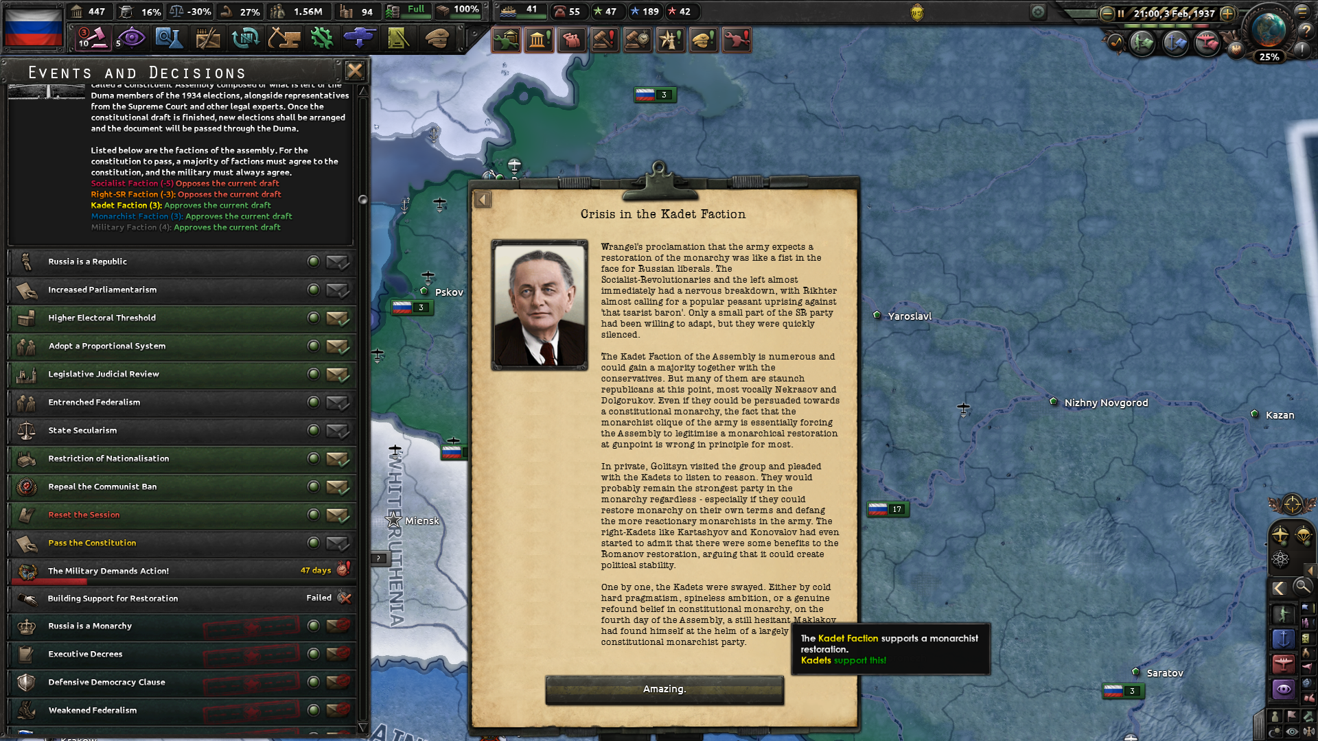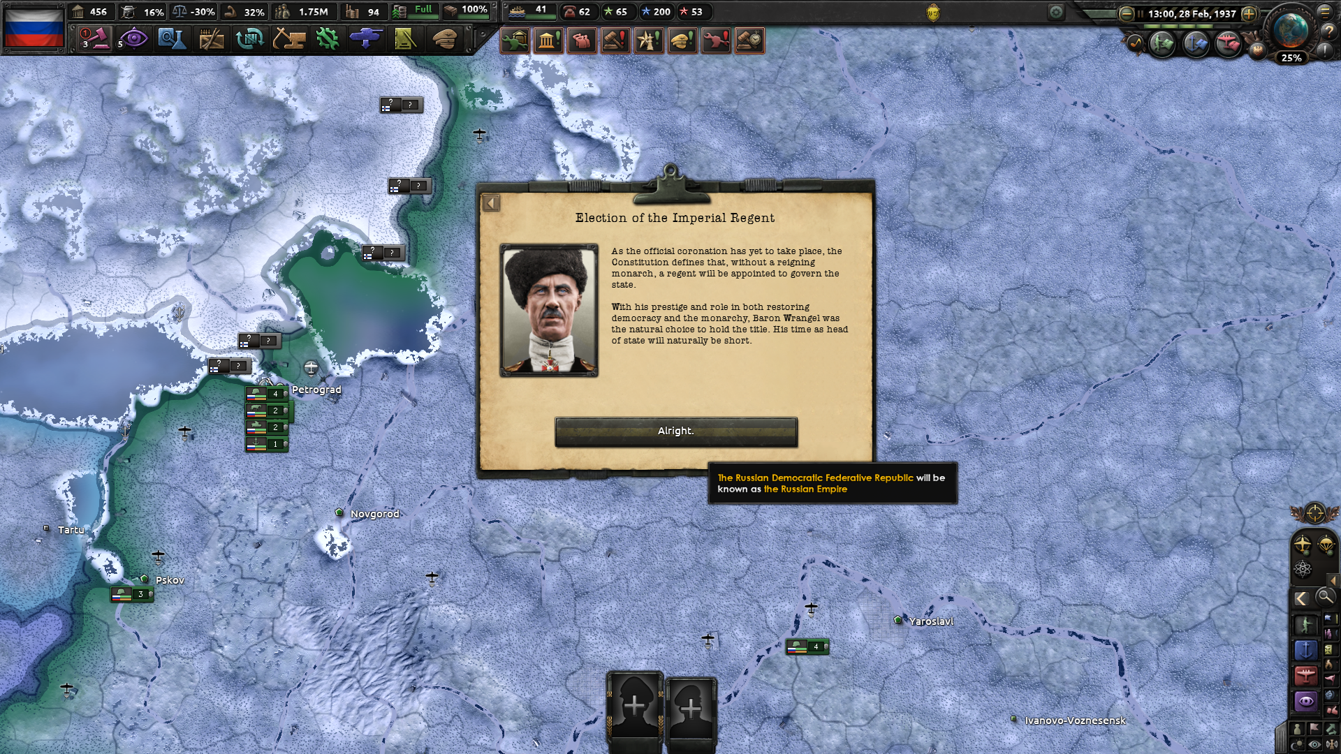 >>1286174 Ах да, начинал не за обычный север, а за расширенный - за национально оСВОбодительный фронт, как то так он назывался. Там ещё он получается, когда райзин сан приняли на пленуме и ты получишь весь север до сияния. Может это как-то повлияло?