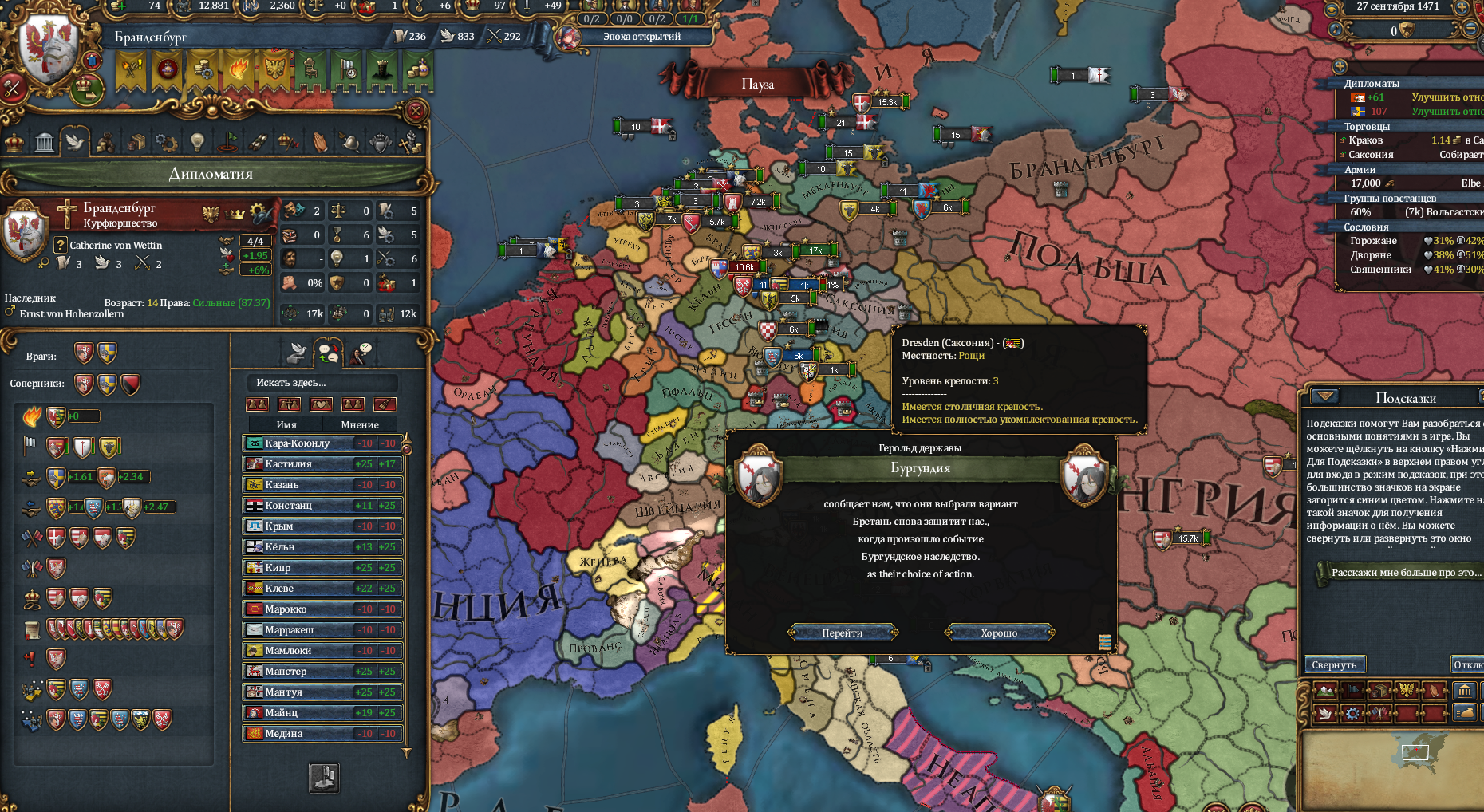>>1284289 (OP) Дратути. Купил на распродаже ЕУ4, играл последний раз в неё году в 18ом, не очень много. Требуется некоторая помощь, так как я нихуя не понимаю: 1. Сословия. Как этой хуйней оперировать? К чему там нужно стремиться? Пока что я только понял, что нужно держать лояльность выше 30, а что по поводу земель, которые можно отбирать? А нужно ли их отбирать? 2. Как лучше воевать 3. Что первостепеннее: технологии или идеи, какие идеи лучше других и почему 4. В игре я вижу параметр "абсолютизм", а что это такое реительно непонятно.