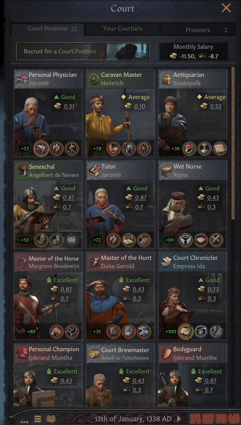 Crusader Kings 3 (867–1453) — средневековье. Детально проработанные религии и феодальная система. В данной игре игрок руководит не страной как таковой, а персонажем и династией со всеми их проблемами. Ключевую роль играют личные навыки вашего персонажа и его взаимоотношения с другими персонажами.
