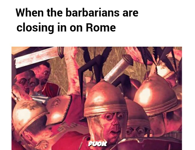 >>1292658 И что это даёт в игре, когда копейщики не тащат. Хотя ты не прав насчёт триариев. Я вот любитель за карфаген покатать, и соответственно практически с самого начала игры приходиться сражаться с римской машиной, хоть и ботом. Так вот когда вижу в римских войсках триариев большего одного генеральского отряда, я очень сильно напрягаюсь, потому как они спокойно дают пизды половине карфагенской армии, просто потому что не умирают, приходиться ливийскими копьеметателями закидывать, лол. Да триарии даже слонов могут не заметить, а ты их обижаешь.