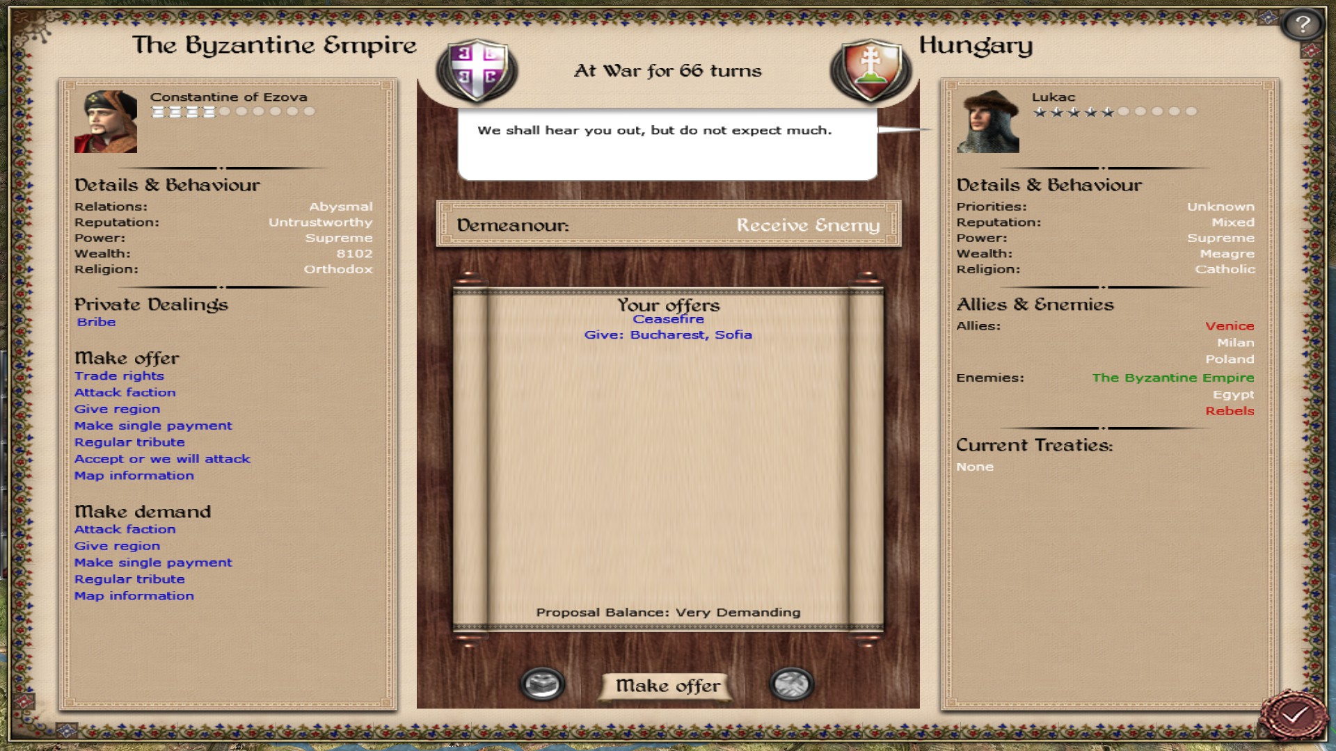 Сап, маляры. Обновил ПК на днях, до этого был некробук. Накатил булатку, которая на некробуке стабильно вылетала спустя 10 ходов. Вот уже более 150 ходов сделано за Владимир в поздней кампании на средней сложности и возникает несколько вопросов. А хули так просто в плане экономики (у меня 100к золотых в казне уже, два замка, покрашено всё Поволжье и сев. Кавказ, ещё по 10к всем православным братушкам подкидываю каждые 5 ходов)? И почему мои генералы не плодятся? Есть черты "плодовитый", женю их молодыми на заморских породистых кобылах с чертами "плодовитая" и прочая в том же духе. Но от семейного дерева осталось хер, да нихуя благодаря их чайлдфри. Ёбаная плодячка!