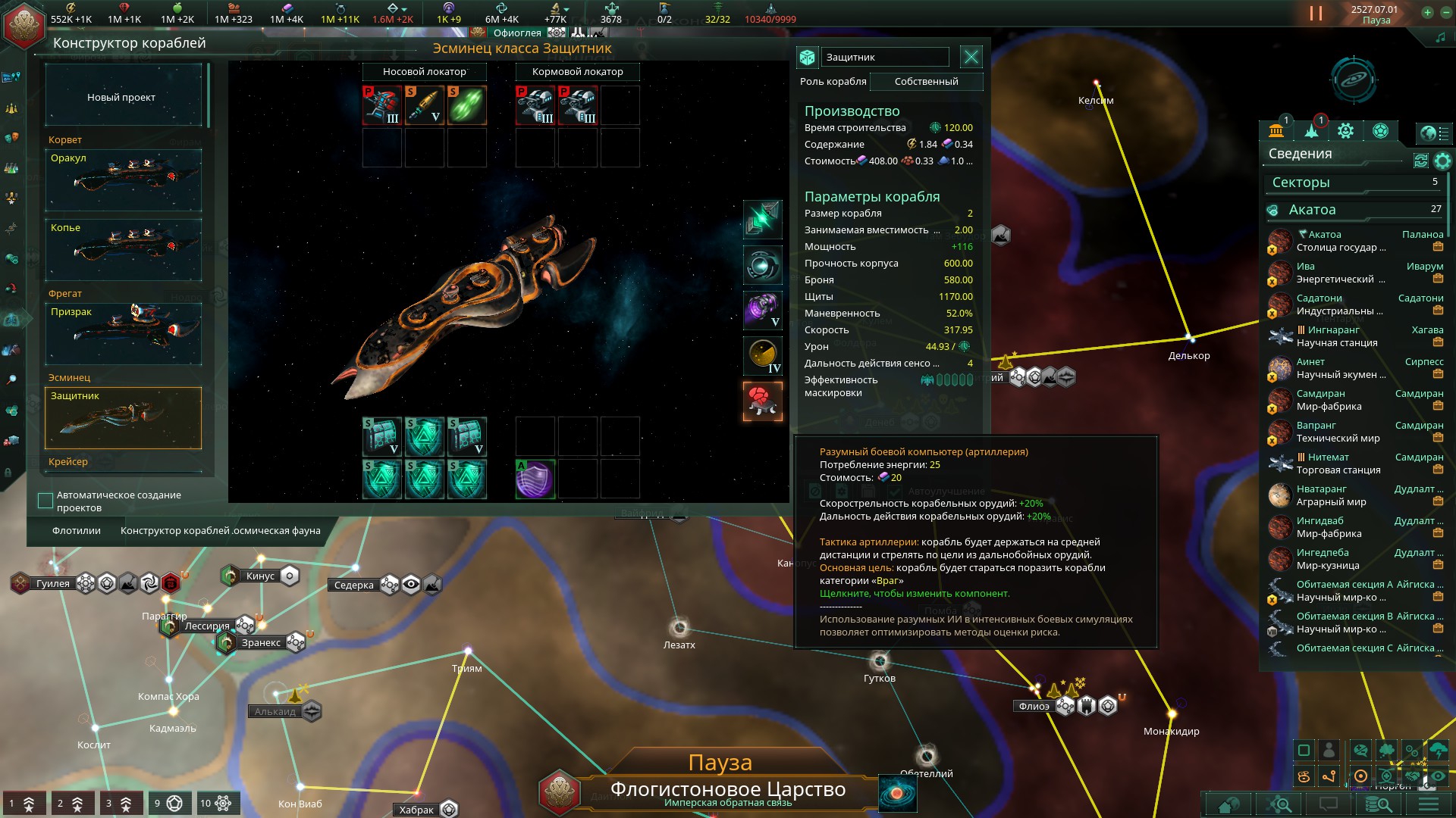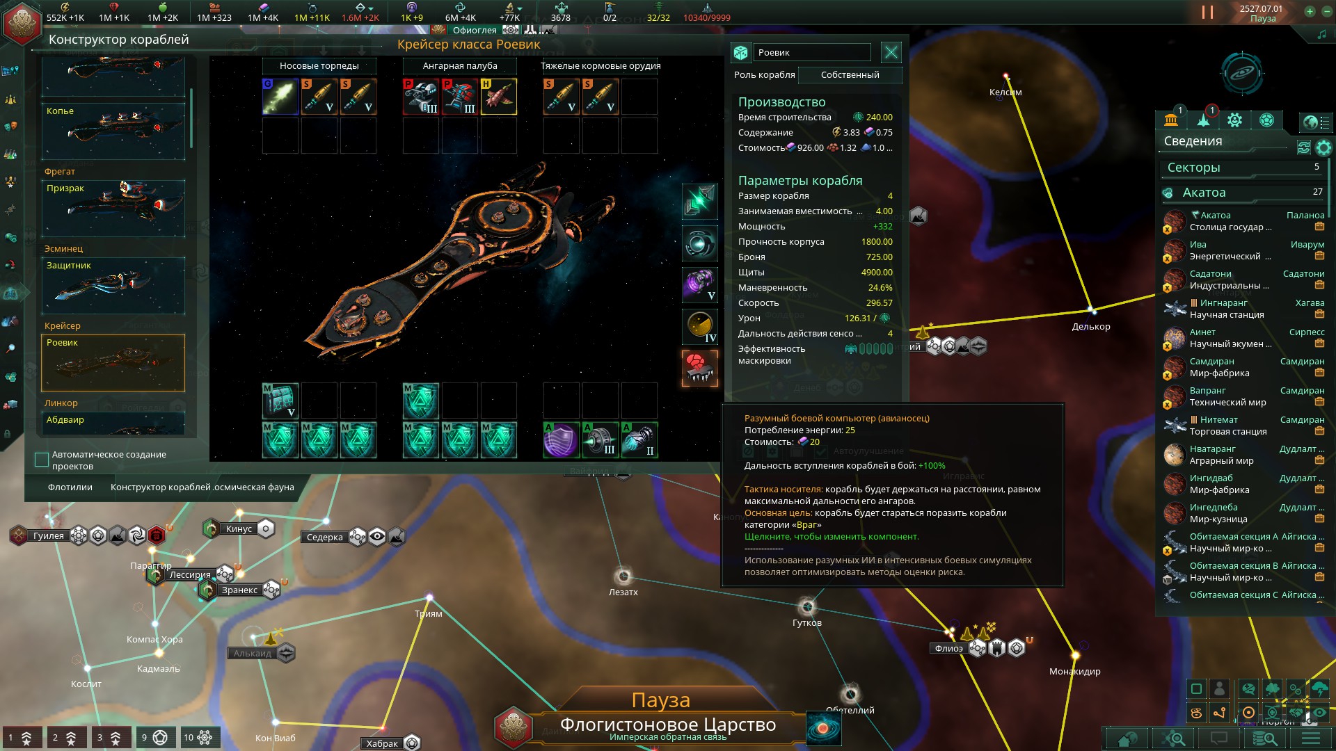 >>1297380 >Ракеты как оружие в принципе говно ну хуй знает. ракеты далеко стреляют, имеют 100% точность, что явно больше чем у большинства дальнобойных пушек, вроде кинетической артиллерии, еще 25 трекинга по умолчанию есть. у ракет есть четкое применение - стрелять ими по медленным целям, не получая урона в ответ - мало что может сравниться по дальности с ракетой на артиллерийском компьютере, и с бонусом +10% дальности от доктрины, если не считать кинетическую артиллерию и X/T слотовые орудия. говно-оружие? по мне, так ракеты очень даже хороши впрочем, есть еще кое что, что перестреливает ракеты по дальности - торпеды у бота на крепостях. у меня как то раз был такой случай - я пытался захватить хорошо защищенную систему бота, крепость с мощью 60к. я направил туда флотилию артиллерийских крейсеров и забыл, посчитав, что победа у меня в кармане. позже увидел, что система так и не захвачена, а флотилия крейсеров пропала без вести. направил туда еще 2 флотилии артиллерийских крейсеров и дестров, но на этот раз решил посмотреть, как идет бой. цитадель врага с, вроде бы, 25 защитными платформами быстро расстреляла обе флотилии - основной урон был нанесен торпедами. на платформах врага висел бонус 140% к дальности. пиздос конечно