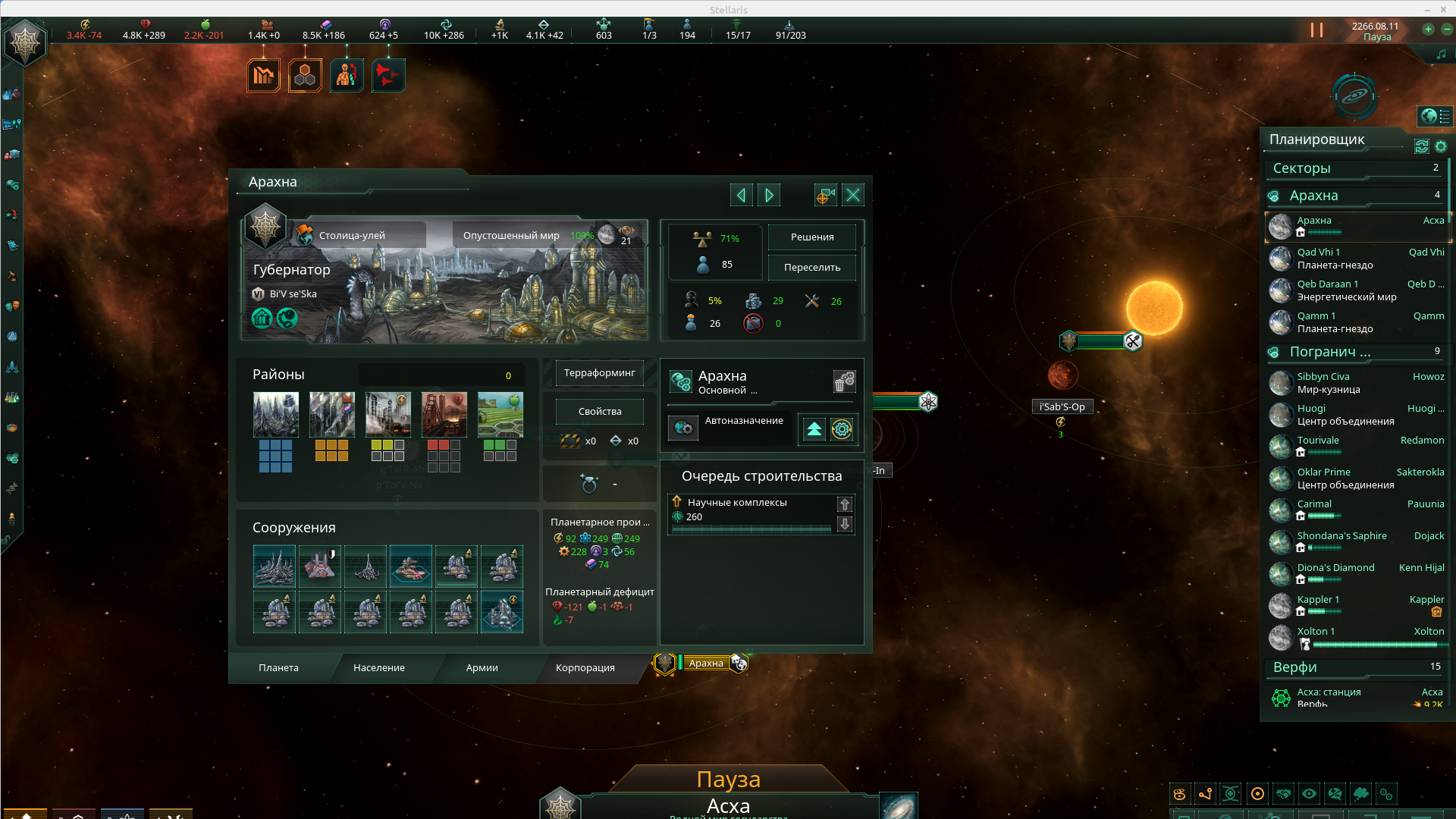 Я вот только начала игру за безобидный пожирающий рой и не какой-нибудь тупой быдло-рой, а интеллектуальный быдло-рой. Я только первую планету с примитивами нашёл через 2 звезды от моей столицы, и сразу на неё высадил десант. Я думал, всех пожрут, раз уж я пожираюбщий рой, но после высадки были остатки сопротивления и потом ухудшение криминально обстановки (чё?), видимо бунты оставшихся или я х/з, я всё там всё стражами заставил, однако пока я искал планеты рядом для колонизации, а эта планета застраивалась постами стражей - нашёл 3 и переключился на них - так вот, у меня ЧТО-ТО случилось с этой планетой: бунтыуменьшения стабильности были, а потом она просто пропала взяла из моих планет. Ну вот было 2 планеты, на что-то отвлёкся - осталась одна.Почему так случилось? А потом я вообще ни к кому агрессии не проявлял, но все найденные планты примитивов сразу же относили ко мне с -1000 - лол, блядь, они даже не знают о моём существовании, но сразу меня ненавидят. А ещё пока я тихо мирно развивался и искал границы с другими соседями, занимаясь экспансией пространства незанятного, мне два раза успели объявить войну ни за что. Ладно, первый раз я почуял неладное, когда против меня попытались политическую провокацию сделать, а я как раз качал начало шпионских хитростей, и при этом у меня только только случился удачный апдейт из рост металла, усиления корветов и перестройка базы под две верфи, из-за чего разведданные нападающего о моей мощи на 400+ силы на момент объявления войны и потужный 1000~ флот подлетавший к моим границам, внутри моих границ пососал 3000+ мощного хуйца моих флотилий. Потом вроде угомонились, но, сука, всё равно в крысу напали потом. Я отбил, почти всех захватил, хотел напасть на последнюю планету, но пидор-захватчик мне всунул вбезвариативный мир. Я согласился. И всё было хорошо: границы открыты, у пидора-захватчика ресурсная база за моей территорией, а внутри моей территории два анклава, один с базой, другой с последней планетой. Всё было хорошо, но вот совсем недавно этот пидор закрыл мне границы. Что-то затевает, значит