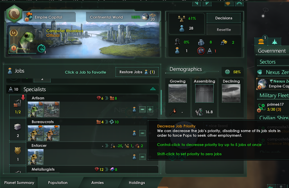 >>1291855 В управлении профессиями интерфейс по стратам поделен, золотые треугольники - наносеки, серебряные - спецы, коричневые - работяги. В большинстве случаев работяги это добытчики базовых ресурсов + солдаты, но могут быть фишечки в зависимости от цивиков и форм правления.