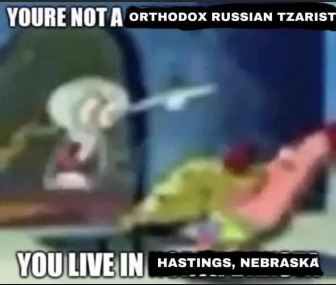 >>1296474 А у меня свое белое евразийство, я против миграции и мультикультурализма, я за православную панславянскую технократическую корпоротократию - короче я путинист Мои взгляды суть есть эклетичный набор всего чего я хочу, а черный с жёлтым пафосно смотрятся -> я называю себя и евразийцем