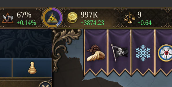 я вообще сейчас пытаюсь купцов задушить, лишаю их прав, мне уже совсем похуй на их бонусы на торговлю она и так слишком могучая, вот только каждое право -200 стабилки пока до 50 с копейками сбил надо до 30-ти наверное и силу короны поднять и сделать наконец выборный парламент