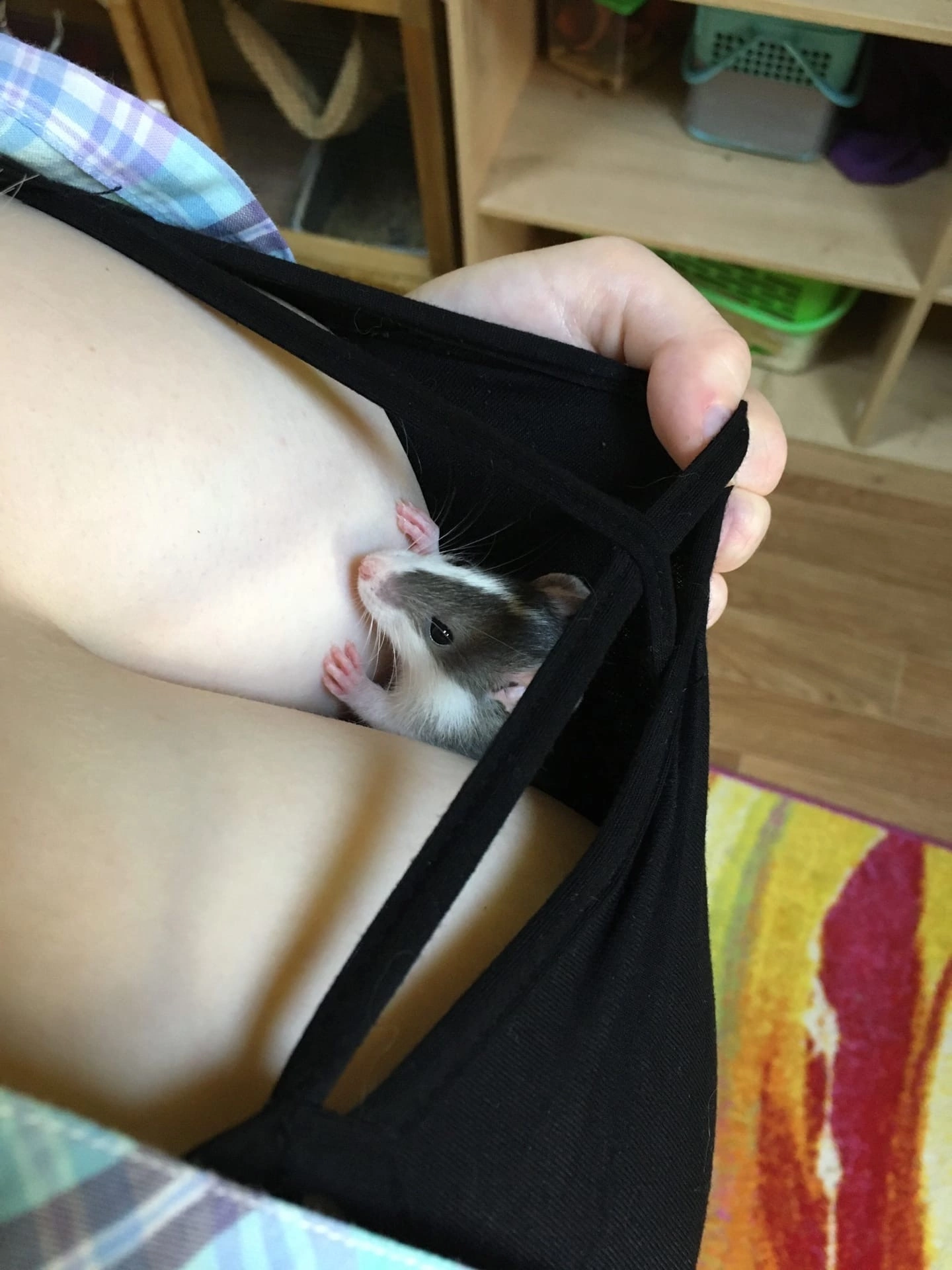 В компашке есть тян которая выделяется в основном пышными формами. Ну и соответственно любит за счёт этого привлекать к этому внимание, одеваясь очень откровенно с акцентом на грудь. И мало того что это очень много взглядов собирает, так ещё и в некоторой одежде постоянно норовит выпасть. Как пример - реально маленький топ, который едва прикрывает грудь.