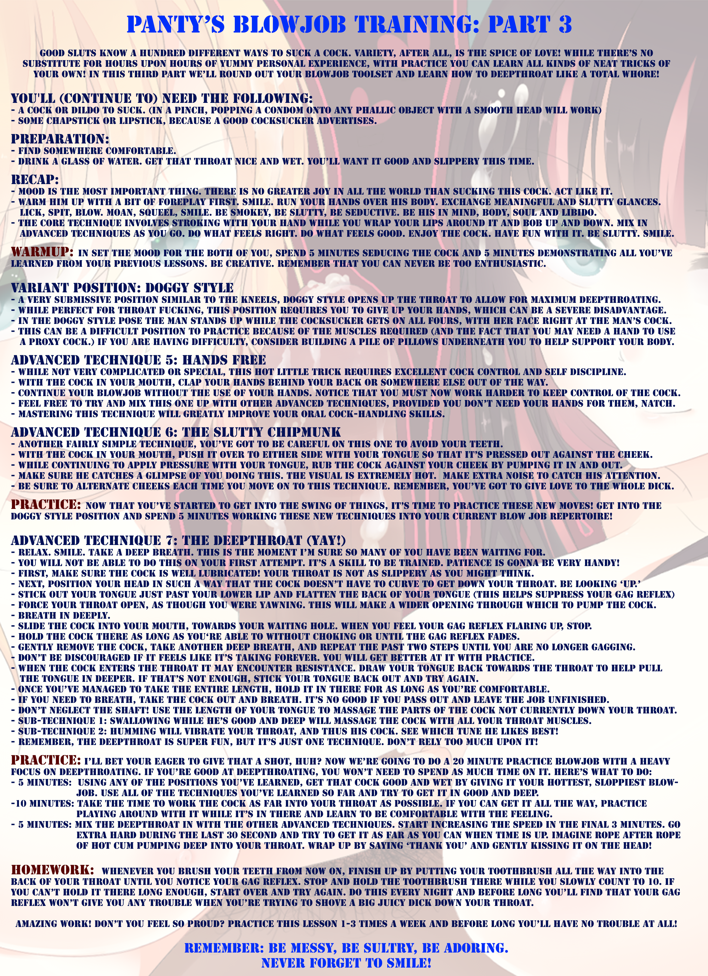 Годный тредю, один из моих любимых фетишей. Еще с детства очень нравилось смотреть на глубокие минеты. Сам иногда практикую на дилдо и кунчике, но получается откровенно плохо, я не знаю как много и часто мне надо тренироваться, рвотный рефлекс покоя не дает, дыхание контролировать не умею, может какие нибудь медицинские препараты использовать хз, но научиться комфортно глотать член очень хочется, хочется быть охуенной соской, ня.