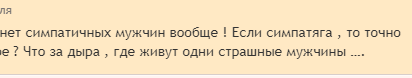 Вот пример - переписка, замужняя шалава 51 год визжит, что в её мухосранске не завезли Робертов Патинсонов и Джейсонов Стэтхемов. Зато в других городах конечно пирог слаще, только она свою жопу туда не повезёт, чед ещё и на ламбо должен за ней приехать. 3 пик, расценки среднетян 25 лвл, стройная, предлагал 5