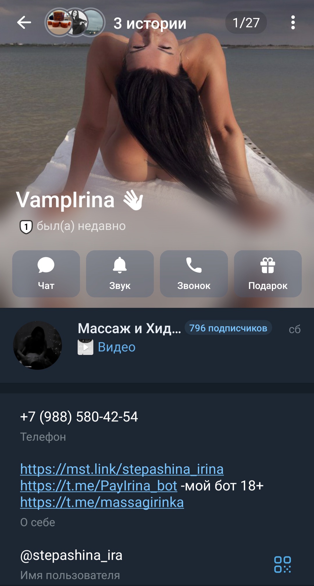 Есть приватка с XXX, в том числе piss (партнёр - женатый мужик; по её словам, его жена раньше знала, что он с ней встречается, сейчас не знает, что они продолжают отношения): t.me/PayIrina_bot