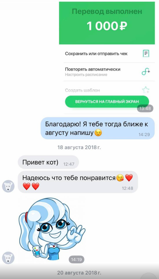 P.S. Еще фоточка переписки с другой уже тяночкой, у которой трусики брал.