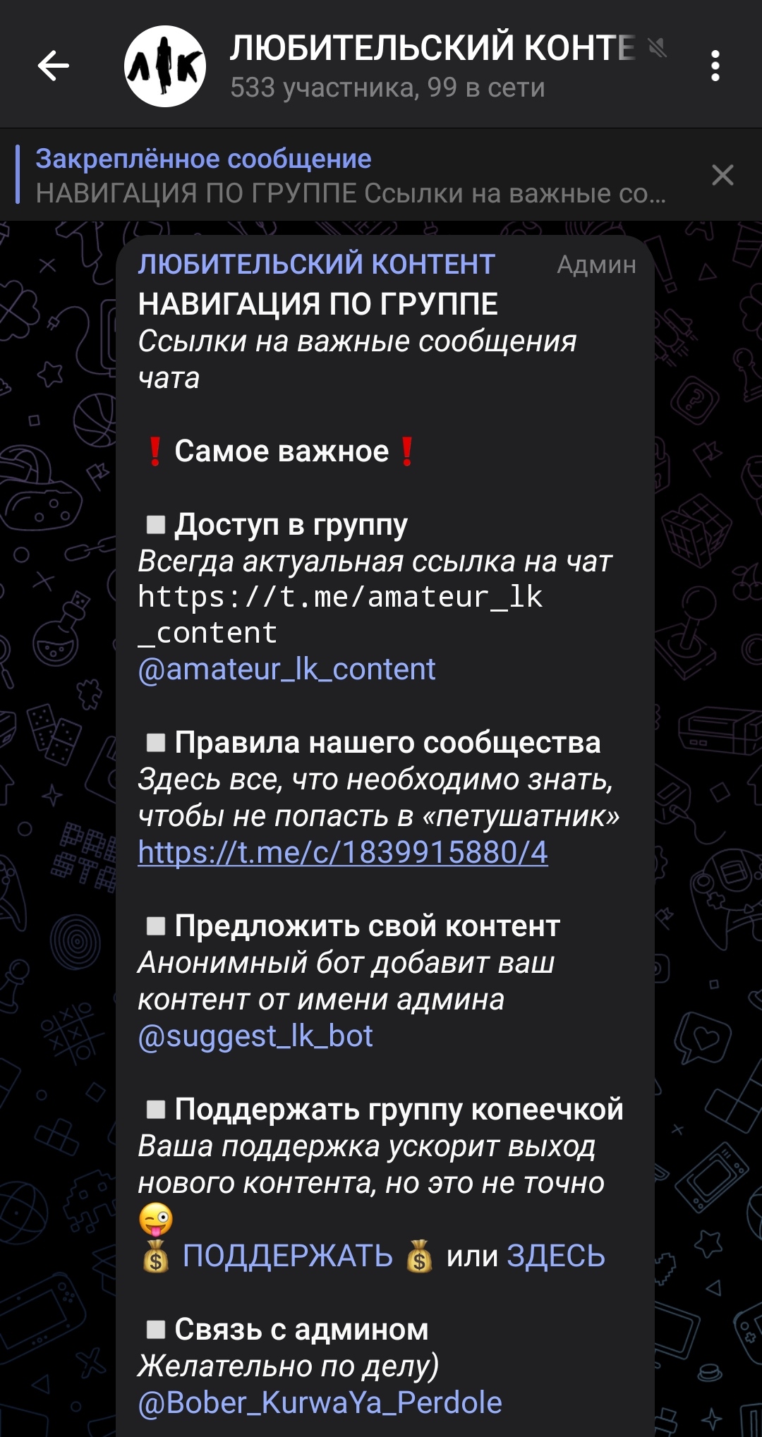 >>768751 У mysw НЕТ чата в телеге!!! Чаты создают только тупые комерсанты для продажи ворованного с сайта или просто кто-то с форума чисто для потрындеть, но админом сайта эти чати никак не регламентируются