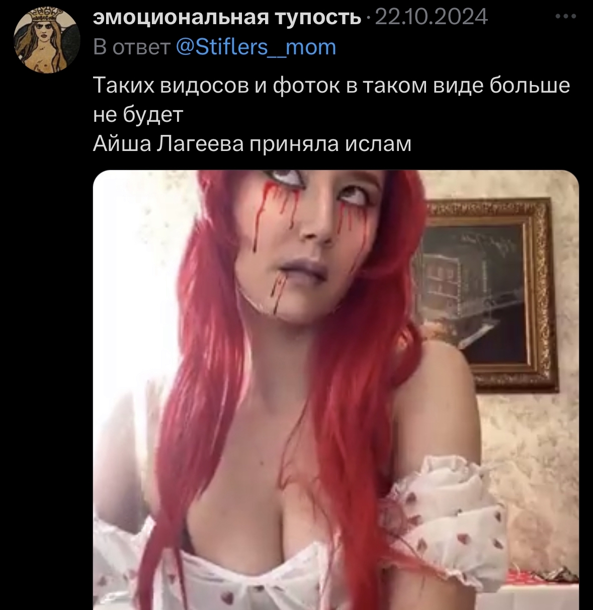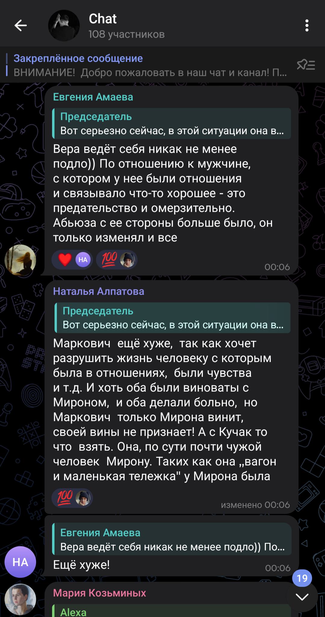 >>1015101 Да обычные созависимые отношения, завязанные на наркоте. Про истерики Диско тоже пруфов нет, только историю со словофестом могу вспомнить, да и тогда Жопич её запер. Ссоры у всех бывают, там не за гранью. Это хорошо, что они расстались, тянули по факту друг друга на дно. Имхо, Славян бы с ней не завязал никогда, а она и не бросала, судя по всему. Каждый своей дорогой пошёл, негатива они не высказывают о прошлом уже, вон даже пиарил её документалку в инсте, а она похвалила Биографию. Нет смысла мусолить, короче. А насчёт сисунь, они и Диско срали до 2017, находили за что, а когда пришла Курома, сработало классическое "раньше было лучше".