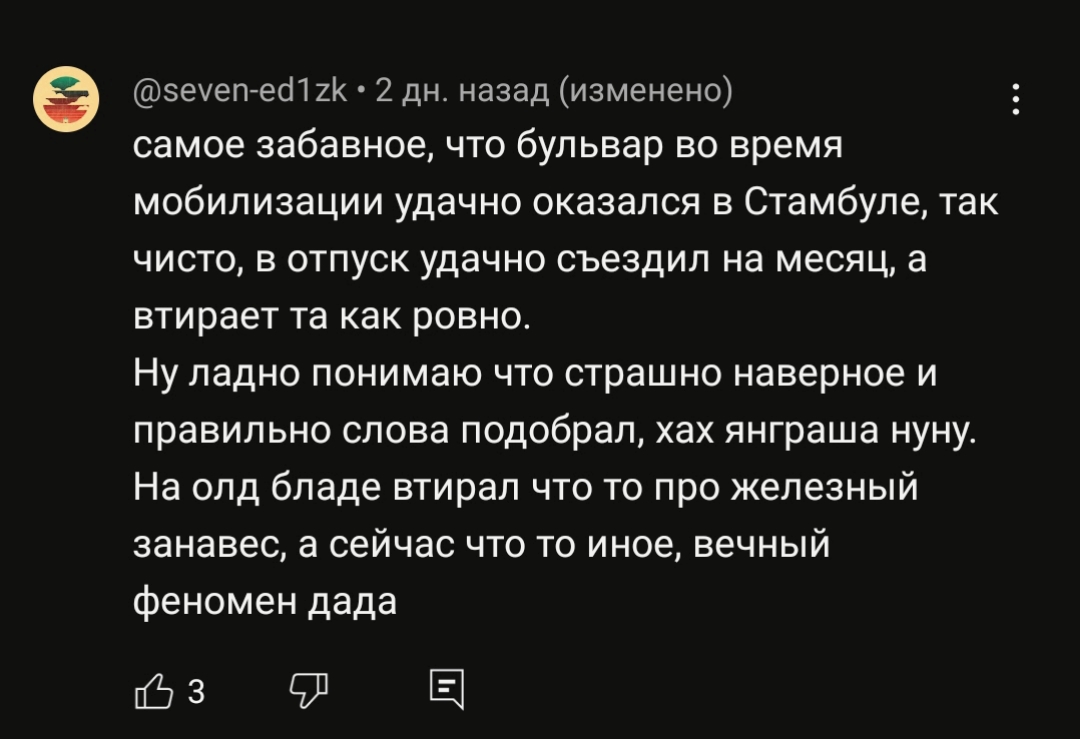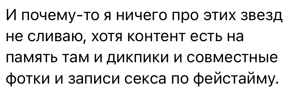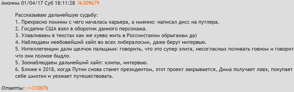 У меня есть мимо инсайдик, что одна из обсуждаемых в треде личностей делала приятно павлу ивлеву. Взамен он записал куплет (правда, текст был уже использован до этого). Так родился мэм "сань, хуй соси" А за новый текст он просил услугу посерьезнее. Информация из очень достоверного источника, раскрыть все карты не могу пока что.