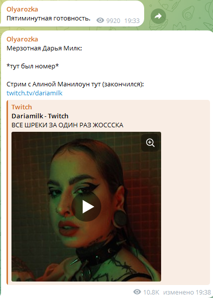 Ну кстати эта оля розка сама первертка 100% которую наверняка в школе пиздили, выглядит соответствующе. в качестве домашних животных у нее мокрицы. устраивала травлю каким-то блогершам типа чижовой, сливая их номера, номера даши милк и арины жопе сливала, какой-то конфликт со светой дейдример еще был. Алсо пыталась сдеанонить реп-блогера макса хаслу ака gangsta_hustla, задетектив в нем хохла. Надеюсь, старичок жив сейчас, позитивный был. по крайней мере его тг канал не шлёт сообщения о неактивности.