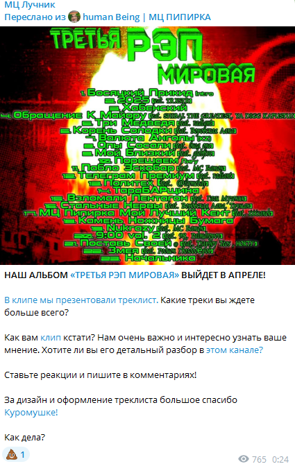 Еще гонору будто это из-за них альбом Пирыча свои цифры набрал. Сынки нах, у него с Раймс Мьюзик прослушек гораздо больше было, вы тупо балласт