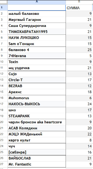 В СЛЕДУЮЩИЙ РАУНД ПРОШЛИ 16 ЧЕЛОВЕК, 2 ИЗ НИХ ПО СПАСАТЕЛЬНОМУ КРУГУ. СПИСОК: 1Группа Боттом 2седьмой бог 3Мацэ Бестi 4Дина Кризис 5Элли Беляш 6калинаспок 7Трубочист 8Abramov VI(300) 9Monteig 10Мц Блины со спущёнкой 11балаково 88 12ICE 13МЦ КИРИЕШКИН 14МэрZич 1501С4BLOCK 16SOSU.ZA.EDU