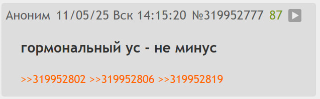 Я напоминаю, что официальная ТРЕДОВСКАЯ тема для Лиги Петухов и Лиги Хуеты: гормональный ус - не минус