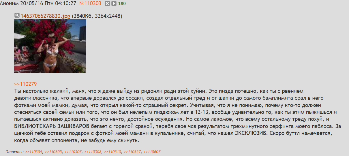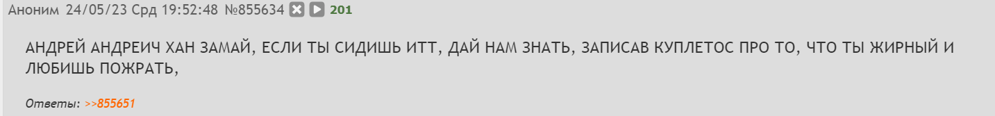 А еще после смерти паши техника я в /б упомянул город, в котором произошла оказия с отцом карицкой и написал на всякий случай что конечно же виноваты люди национальности на букву У Ну и параллельно в жопич треде тоже щитпостил как обычно И знаете чо? А мне за что-то дали бан без причины и срока и для разбана сказали написать в дискорд мочи, я хуею В общем будьте осторожны, вы тут не обезличены, если с того же айпи в вк сидите, то все посты здесь к вашей личности 100% прикреплены, фейки в вк с настоящим вк тоже соединены и когда введут соц рейтинг, миску риса вам никто не даст. на вас будет клеймо ДВАЧЕР и вас отправят в автобус, как хиккана намба ван, даже если вы тянучка.
