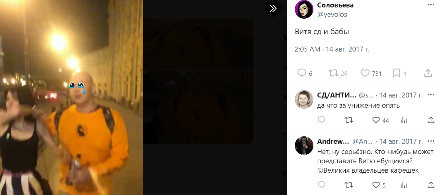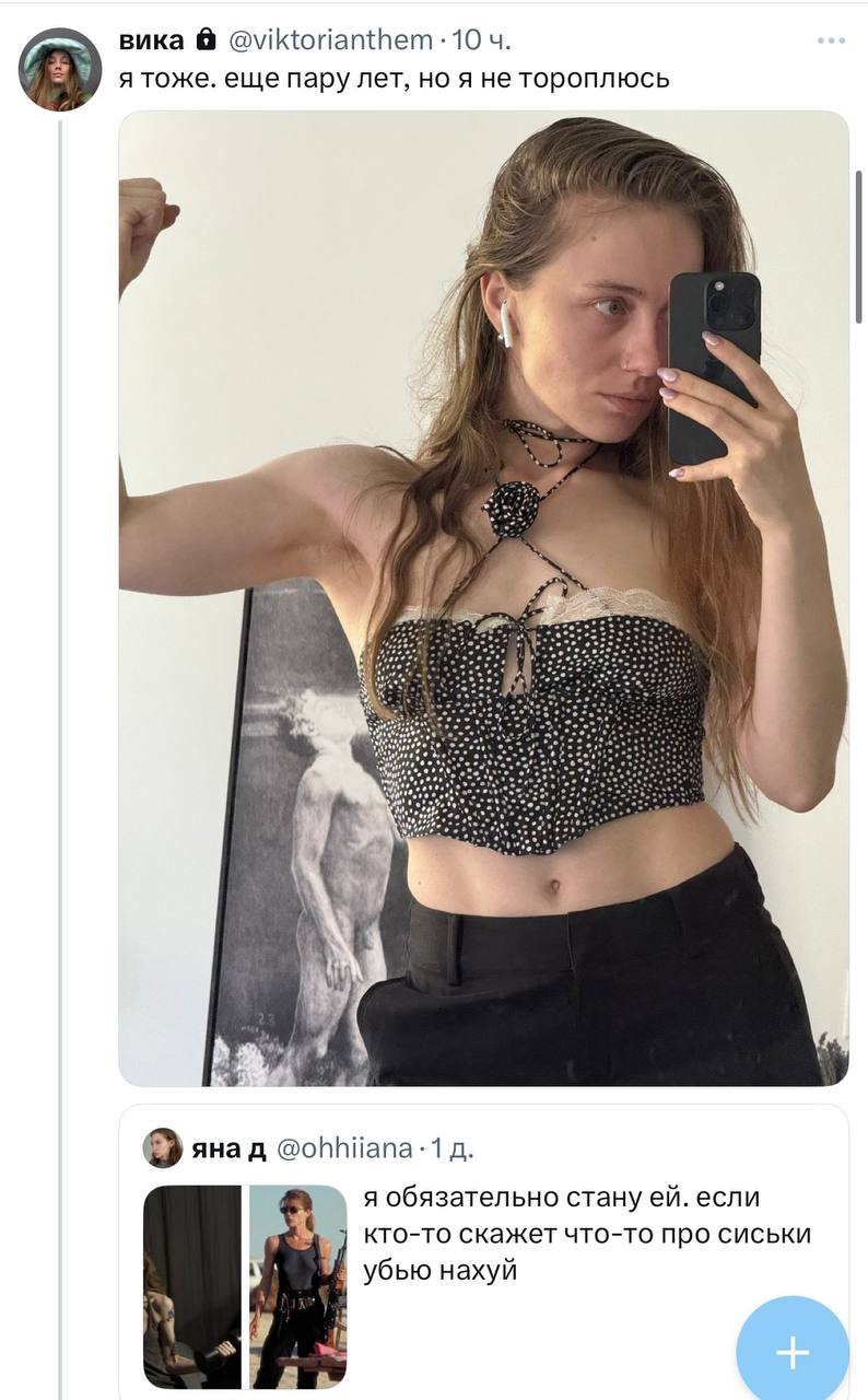 >>1046041 Могу. Я следил года с 18 за Жо Пеши и за Куромой. У меня по многим мимическим, речевым моментам сложилось впечатление, что она под него подстраивается. Не то чтоб я думал, что это специальная операция, а просто, он нашел в 27 девку 20 лвл и начал реально растить под себя. И использовать ее навыки себе на пользу. Хотел он флексить соской, которая компрометирует мир репа, выдавал что веган феминист. Стало удобно другое позиционирование она не отсвечивает. Видно, что именно она ему всегда в рот смотрела. Даже то как он в расставание много использовал ее образ, это точно давлерие, я б так не стал. И то что он добился своего только подтверждает