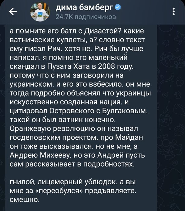 а потом он с серьёзным ебалом знатока ещё когото критикует
