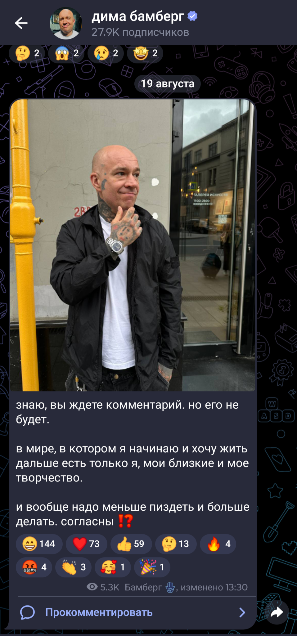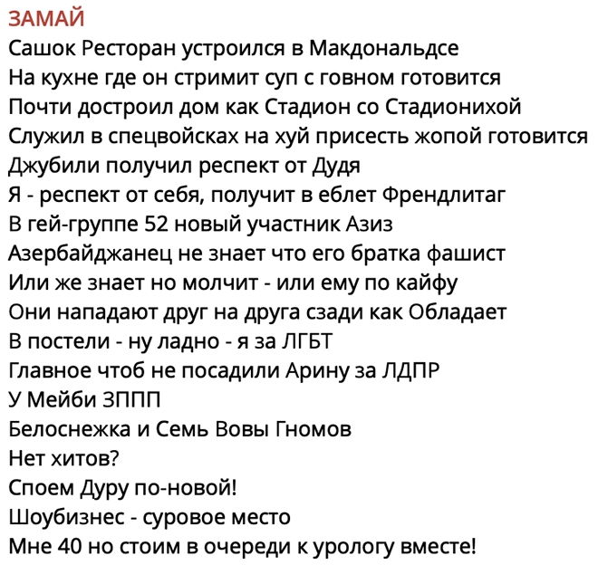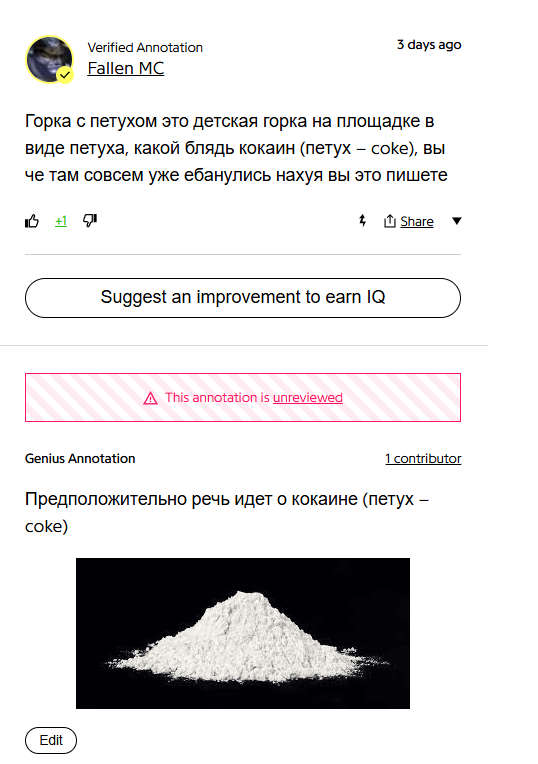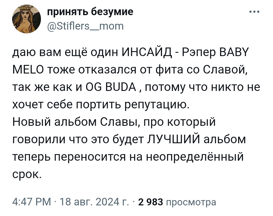 Не, я понимаю что быдлу типа флома всё в кайф, эти любители соусика и свега чё угодно сожрут и не поморщатся, так и продолжат нахваливать любое дерьмо и ставить десятки за РАЗВИТИЕ СТИЛЯ. Но нормальному пацану зачем весь этот геморрой? Это я уж не говорю про то что все артисты теперь по дефолту будут с языком в жопе, и каждый трек будет выходить заведомо отцензуренным.