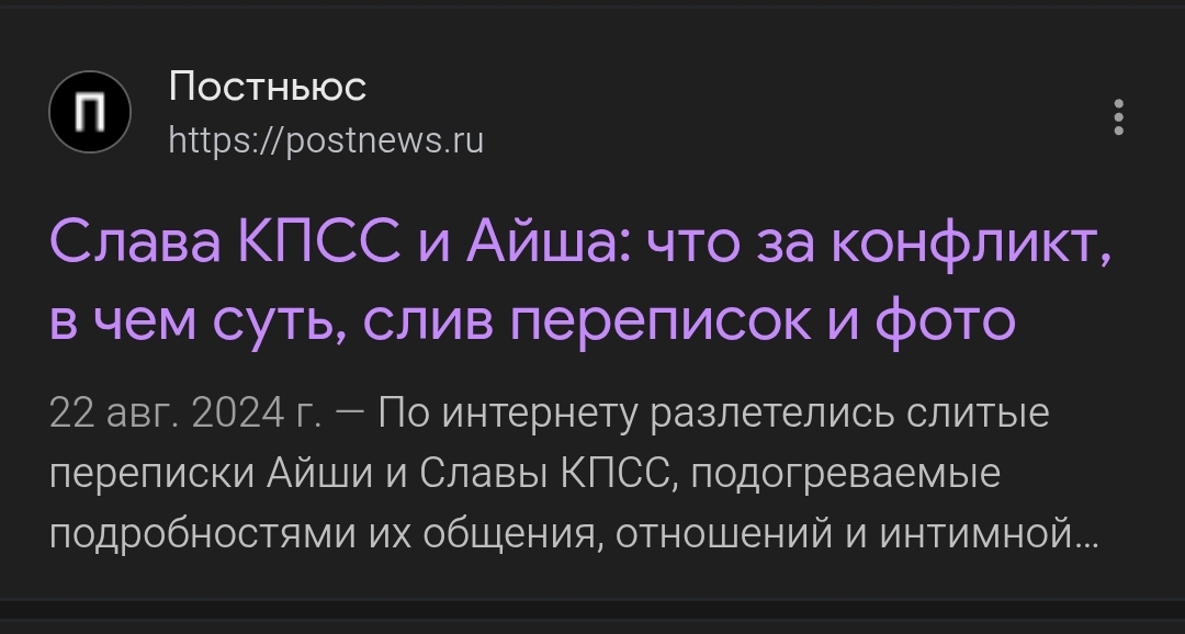 1. Айша начала новую успешную жизнь в ОАЭ со своим парнем Булатом и забыла Жопича 2. Жопич, страдающий в отношениях с Куромой, ночью в порыве пиздостраданий написал Айше и попросил её прислать нюдсы 3. Айша охуела с такой наглости, т.к. проходила долгую терапию после расставания, и написала Жопичу, что она думает про него и Курому 4. Жопич начал оскорблять её в ответ 5. Айша вдвойне охуела с этого клоуна и жёстко прошлась по Жопичу и его семейке в твиттере, раскрыв подробности их личной жизни, включая ранее неопубликованные фото и видео 6. Жопич начал угрожать ей судом со словами, что все посты Айши НОТАРИАЛЬНО ЗАВЕРЕНЫ 7. Айша блокнула клоуна 8. С Айшей связался адвокат Жопича, коим оказалась бездарная инфомошенница, которую Жопичу нашла Курома 9. Айша заявила, что будет подавать ответный иск, готовится нанять Ясмана, и Жопичу пизда в суде 10. На любые попытки Айши широко осветить ситуацию в СМИ Жопич мгновенно подрывается и с помощью денег/связей отменяет их, так случилось с запланированным на субботу стримом с Олегом Кашиным