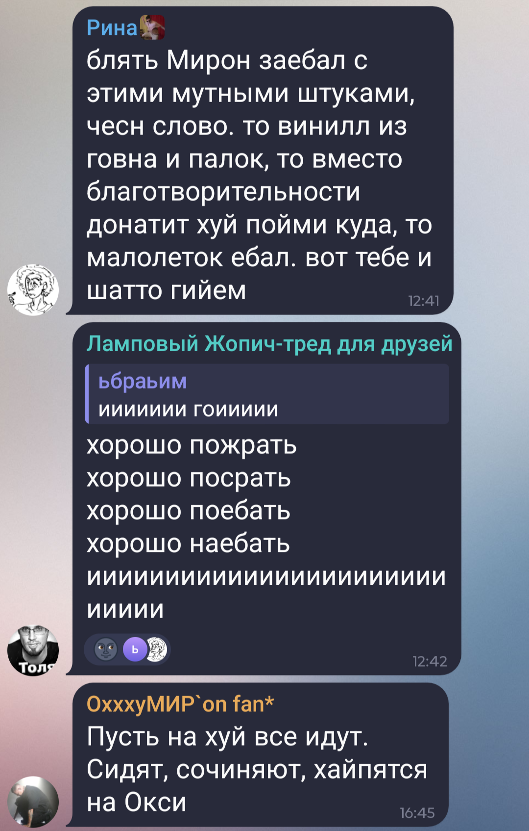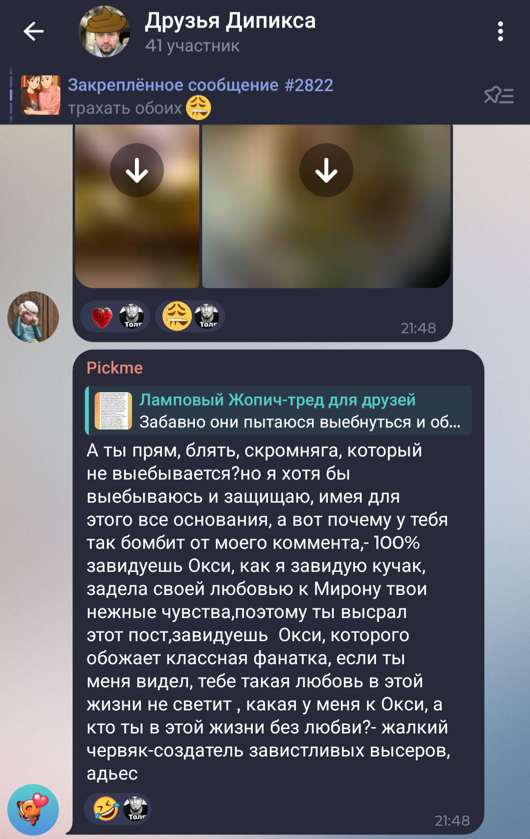 Марамойки шизухи оксифанючки снова бабахнули в канале, лень скрины делать, там пиздец, у оксисисунек нереальная тряска, блять даже читать это всё неохота сука, но это очень смешно ухахахахаахаххахах