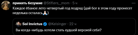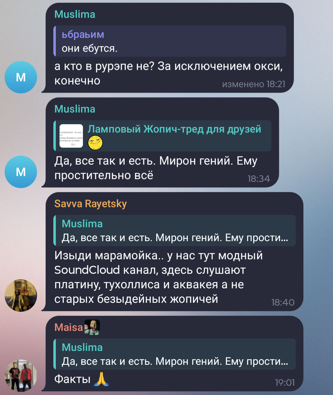 Так и зачем нормальному пацану возиться с этой хуетой? Не проще ли не ковыряться в обосранной товарищем майором помойке, а просто переключиться на англоязычное музло, где всей этой хуеты нет? Я всрал кучу времени и энергии на русский реп, мне будет тяжело принять, что такой музыки для меня больше не существует, но бля, уже нет сил просто со всей этой борьбой за нравственность, ну его в пизду.